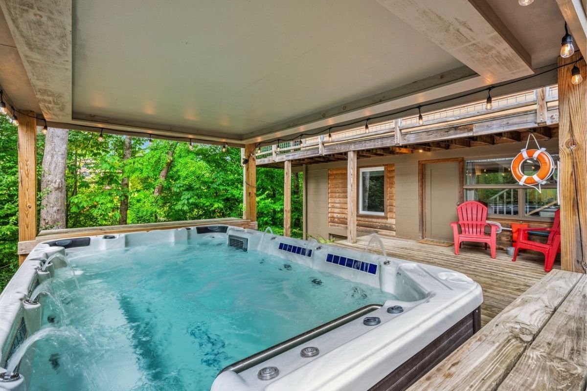 * Covered 12-person hot tub “swim spa” with all the bells and whistles (and fountains!)