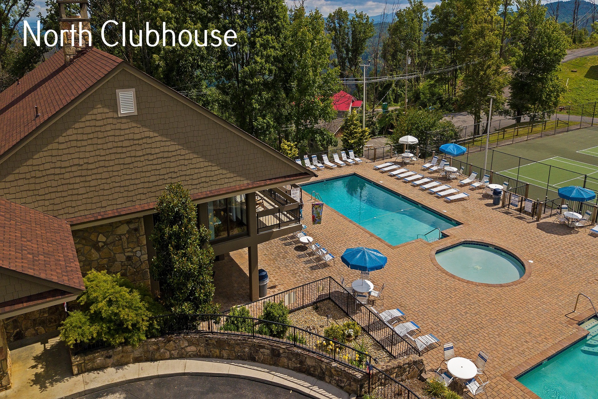 Guests of this Gatlinburg chalet rental have access to three clubhouses, the closest to Amazing Grace being the S. Baden Clubhouse, which has a large outdoor pool, changing rooms/showers, shuffleboard, horseshoes, a playground, tennis courts, a gym, and a game room with billiards, ping pong, foosball, checkers/chess, and video games.