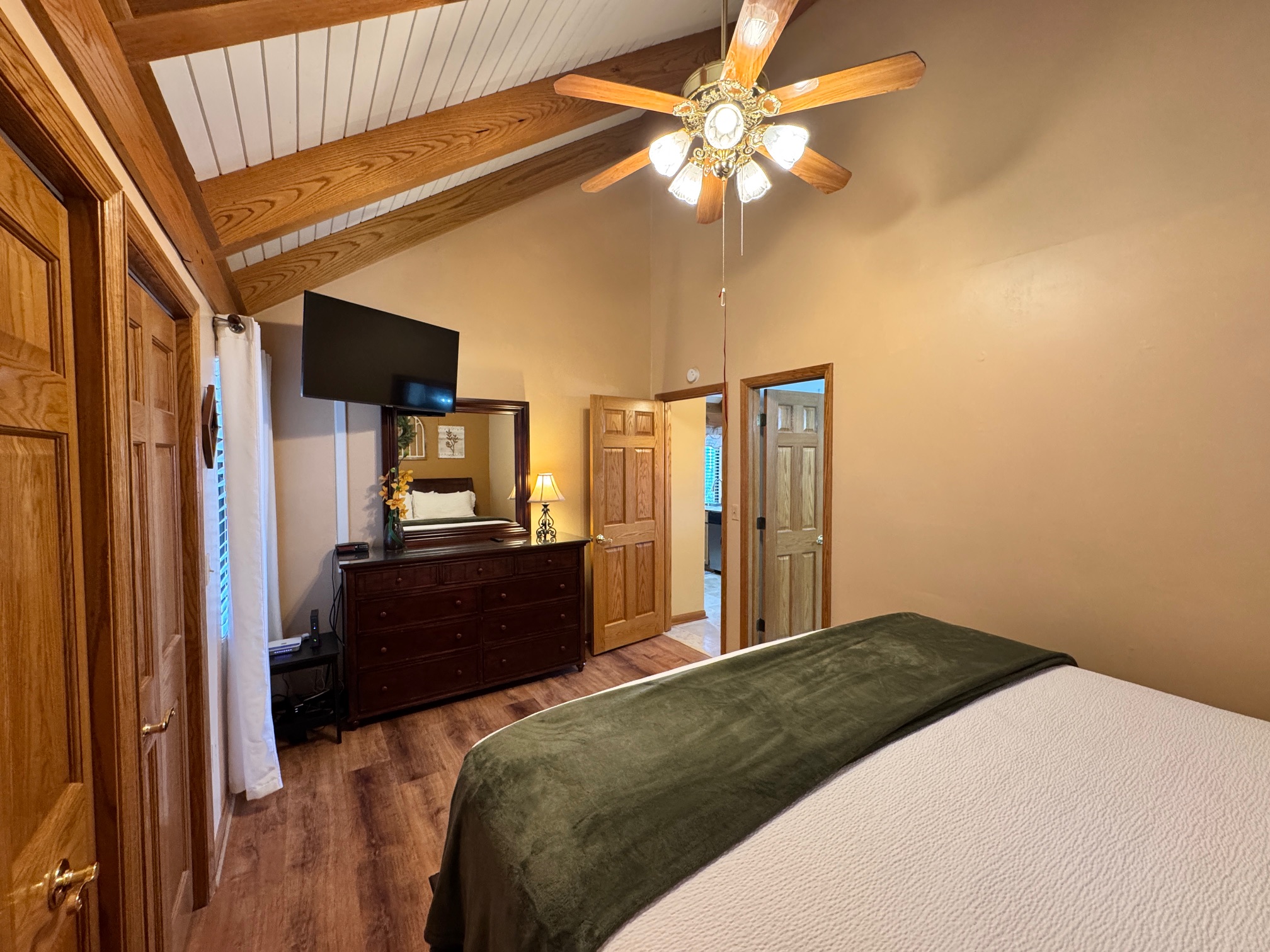 | Primary (main level) | King | Private Bath |
