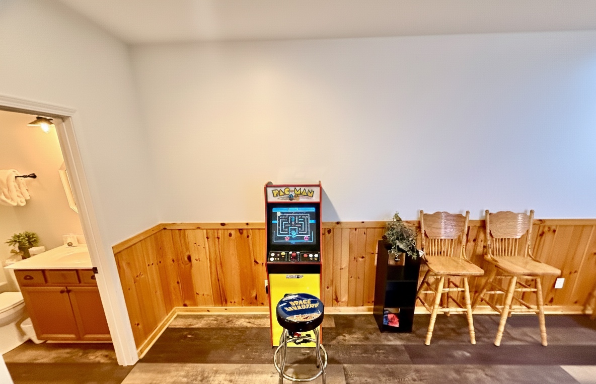 * Game room with pool table, foosball and a video arcade table including Pac Man and many other video games