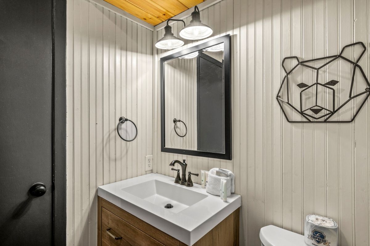 Thank you for the review. The chalet is only 1/2 mile from downtown, so very convenient to all the activities on the strip. We will check for water damage and let the homeowner know your comments on the bathrooms. Please give us a call when you plan to return to the Smokies.Mountain Laurel Chalets staff