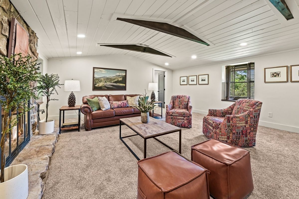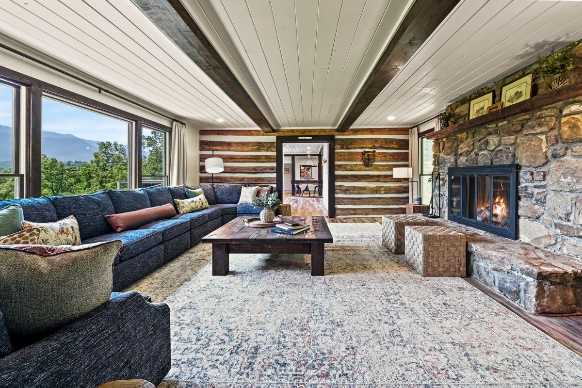 The main level of the home offers a spacious living area that beckons you to unwind. Sink into the plush u-shaped sectional sofa, surrounded by comfortable chairs, while the large stone (gas) fireplace casts a cozy glow. Look out through the expansive picture windows and behold the majestic beauty of the Smoky Mountains, providing a backdrop that truly takes your breath away.