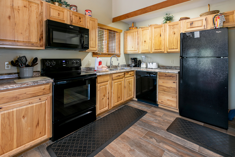Great view,great deck, 6 pieces of each eating utensil. however cabinets filled with a lot of unnecessary stuff like 6 frying pans. 6 forks 6 spoons etc and 6 frying pans??? Air conditioning not working. was fixed within 24 hours. glad it was not summer!! windows, light fixtures and return air vents filthy.All in all,a nice place that needs a good cleaning. Kitchen, bathrooms clean. Hot tub very nice and clean.Anonymous - Posted: 9/15/2015