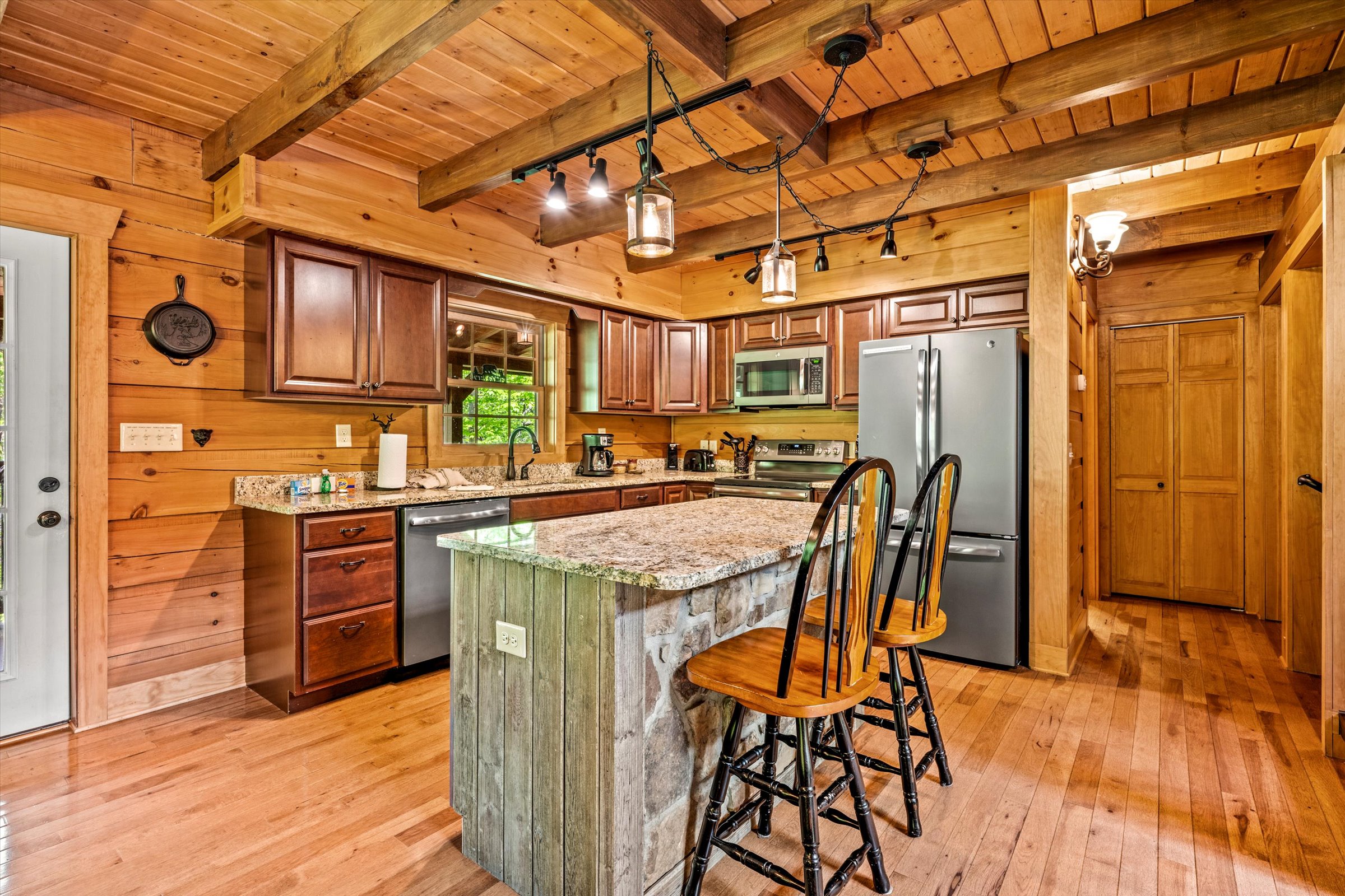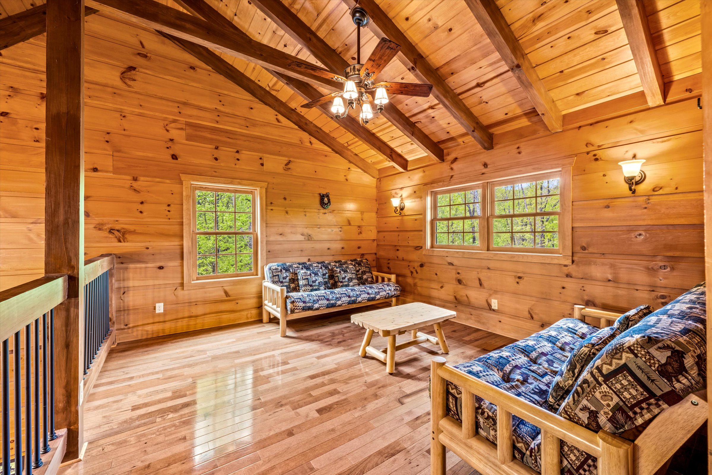 Welcome to Oakmont Lodge-a modern four-bedroom, four-bath log cabin tucked into the heart of the Great Smoky Mountains in Gatlinburg, TN. Ideally positioned near Ober Mountain (Tennessee’s only ski resort), downtown Gatlinburg, and the Great Smoky Mountains National Park, Oakmont Lodge is brimming with amenities and offers the perfect retreat to make your Smoky Mountain getaway unforgettable. This property sits on 8 private acres that was purchased directly from the family of famed Gatlinburg pioneer, Wiley Oakley. No need to drive to the National Park—simply step outside and access private hiking trails that connect directly to Cove Mountain Trail (with access to Cataract Falls), the visitor center, Gatlinburg Trail, and, for the adventurous, even Laurel Falls Trail. Enjoy the Smokies right from your doorstep.