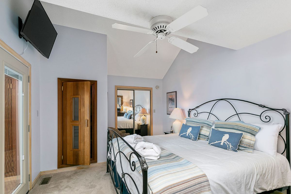 The main level also boasts a king bedroom equipped with a TV (streaming only—no cable) and an ensuite bathroom, complete with a private sauna. Pamper yourself and unwind in ultimate comfort.