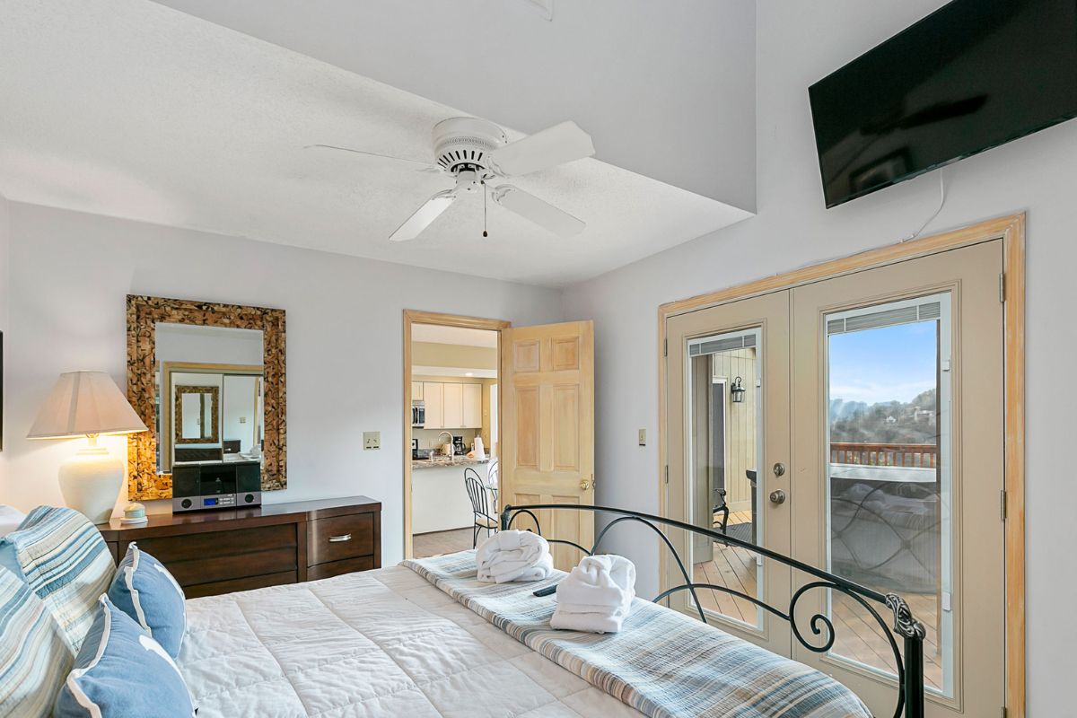 Venture upstairs to discover an additional king suite, also featuring a TV and a private bathroom. This cozy bedroom boasts its own small private deck, providing the perfect spot to sit back, relax, and stargaze into the night sky.