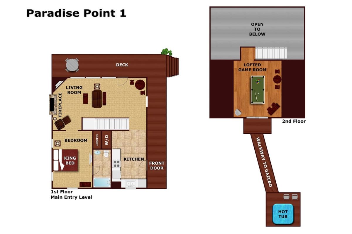 My wife and I greatly enjoyed our 3-night stay at Paradise Point. We were here for our 2-year anniversary and have stayed at several different Mt. Laurel cabins over the past 7-8 years. We've never had a bad experience and this trip was no different. Our first time at Paradise Point, I really enjoyed the 2nd floor walkway to the elevated/covered hot tub. The bed was huge and super comfortable.