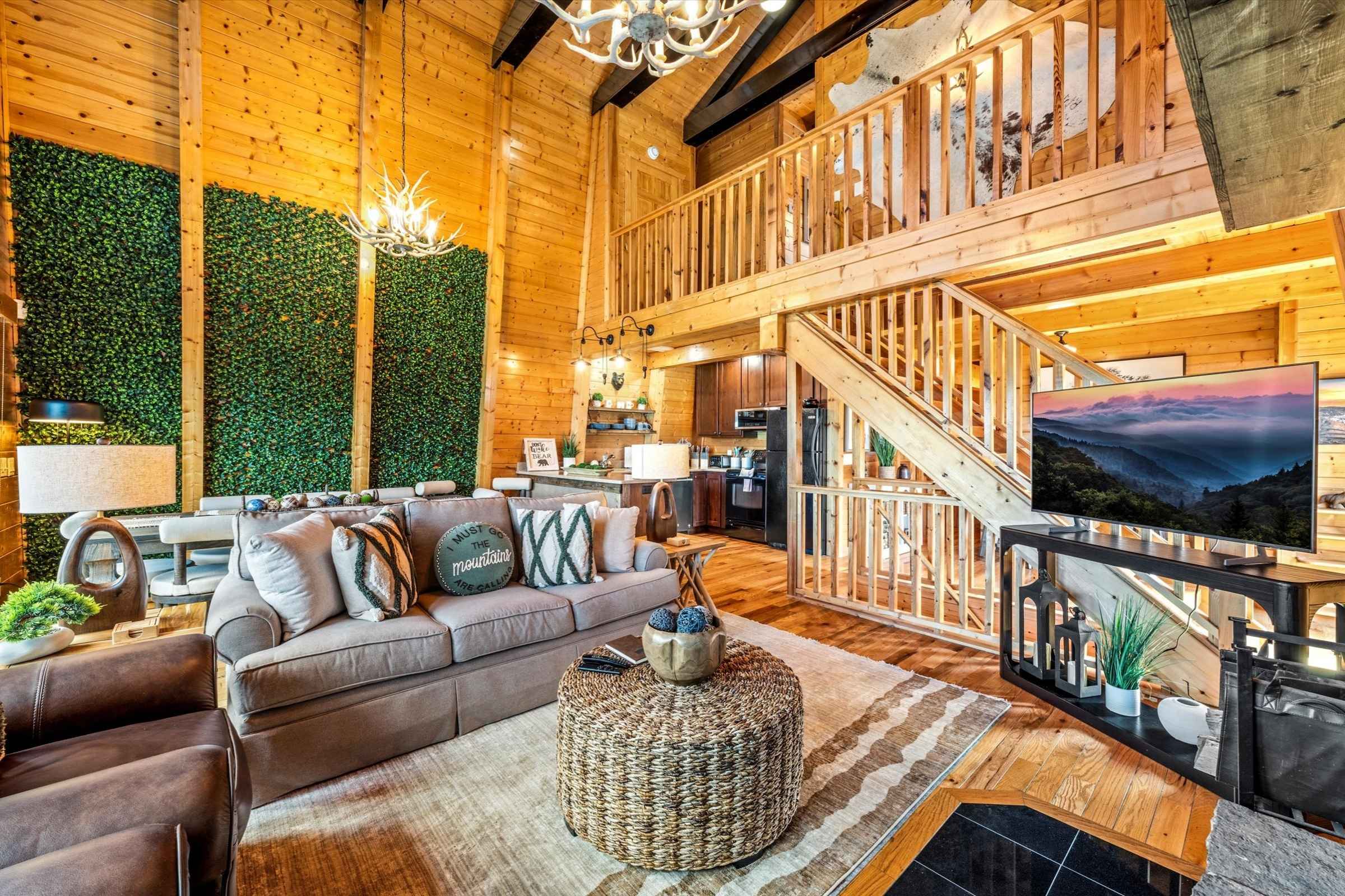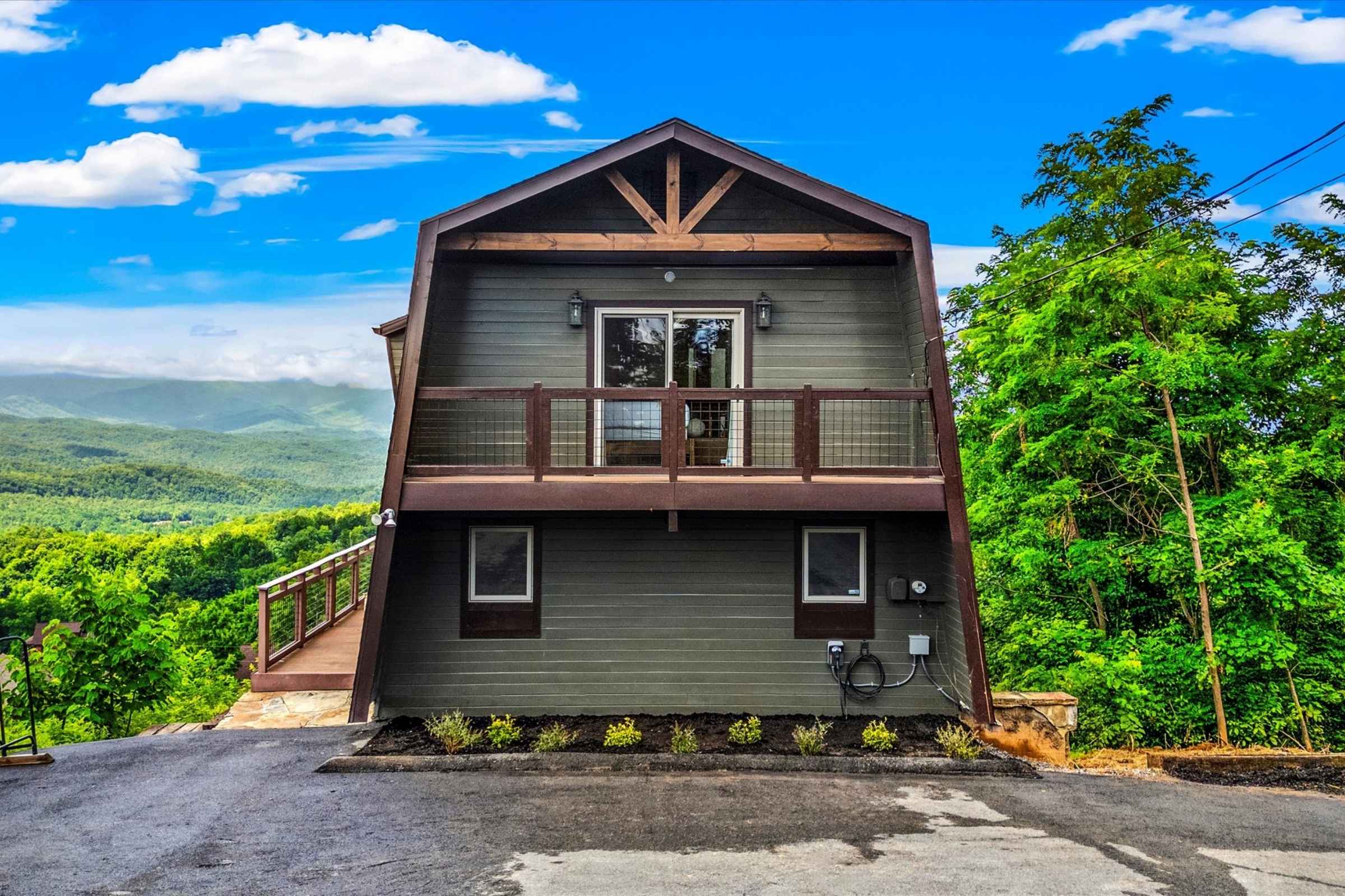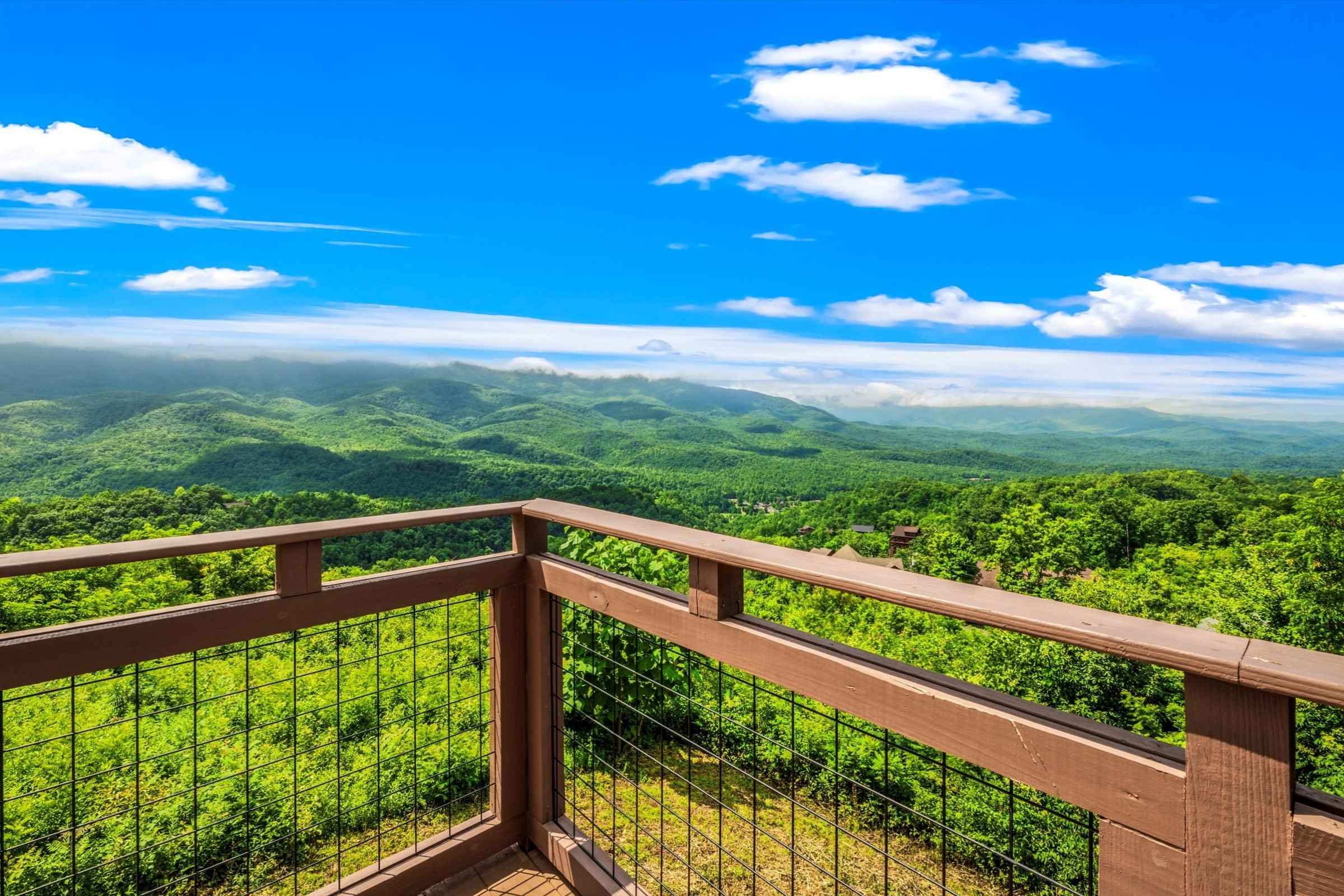 Upon arrival, guests are greeted by a spacious, flat parking area that makes unloading effortless. Step onto the expansive wrap-around porch and immediately soak in epic, panoramic Smoky Mountain views, visible from every level of this beautiful vacation rental cabin.