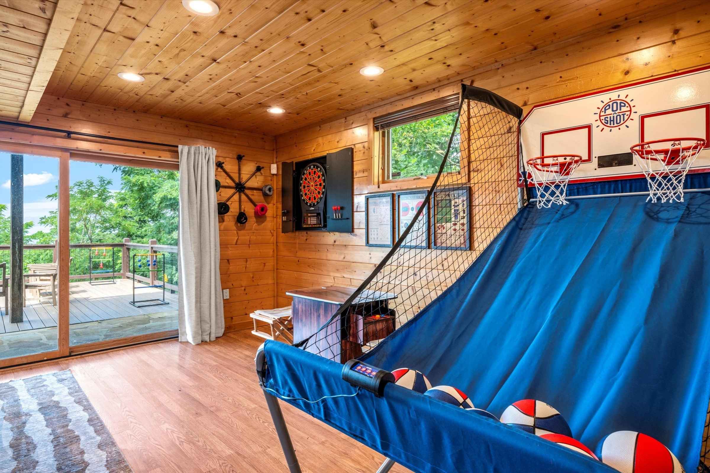 * Incredible in-home entertainment, included eight SmartTVs, a double-hoop indoor basketball game, an arcade table chock-full of games, darts, and Plinko