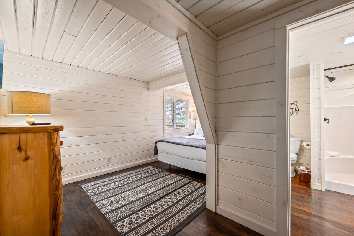 On the main floor, you'll find a lovely queen bedroom complete with a SmartTV (don't forget your streaming login credentials) and an ensuite bath with a shower. Additionally, there's a full bathroom with a shower/tub combo located in the hallway off the kitchen. Upstairs in the loft, there's an additional queen bed.