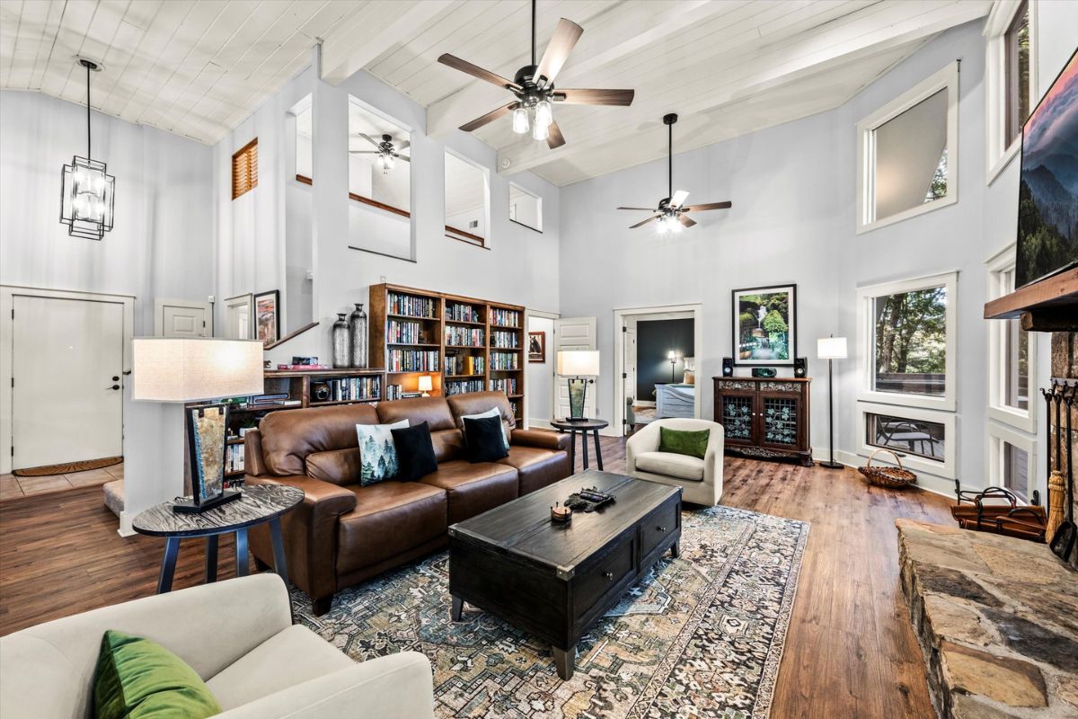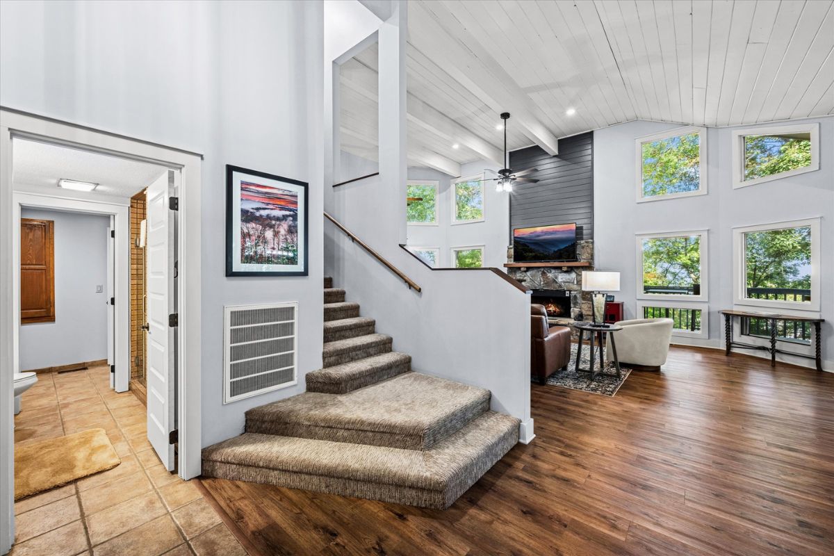 As you step inside this beautiful Gatlinburg cabin rental, you'll be greeted by the spacious great room, illuminated by natural light streaming in through the large windows. Sink into the plush furnishings of the living area, where a cozy stone gas-log fireplace and a large flat-screen SmartTV await – just bring along your login credentials for streaming your favorite shows and movies.