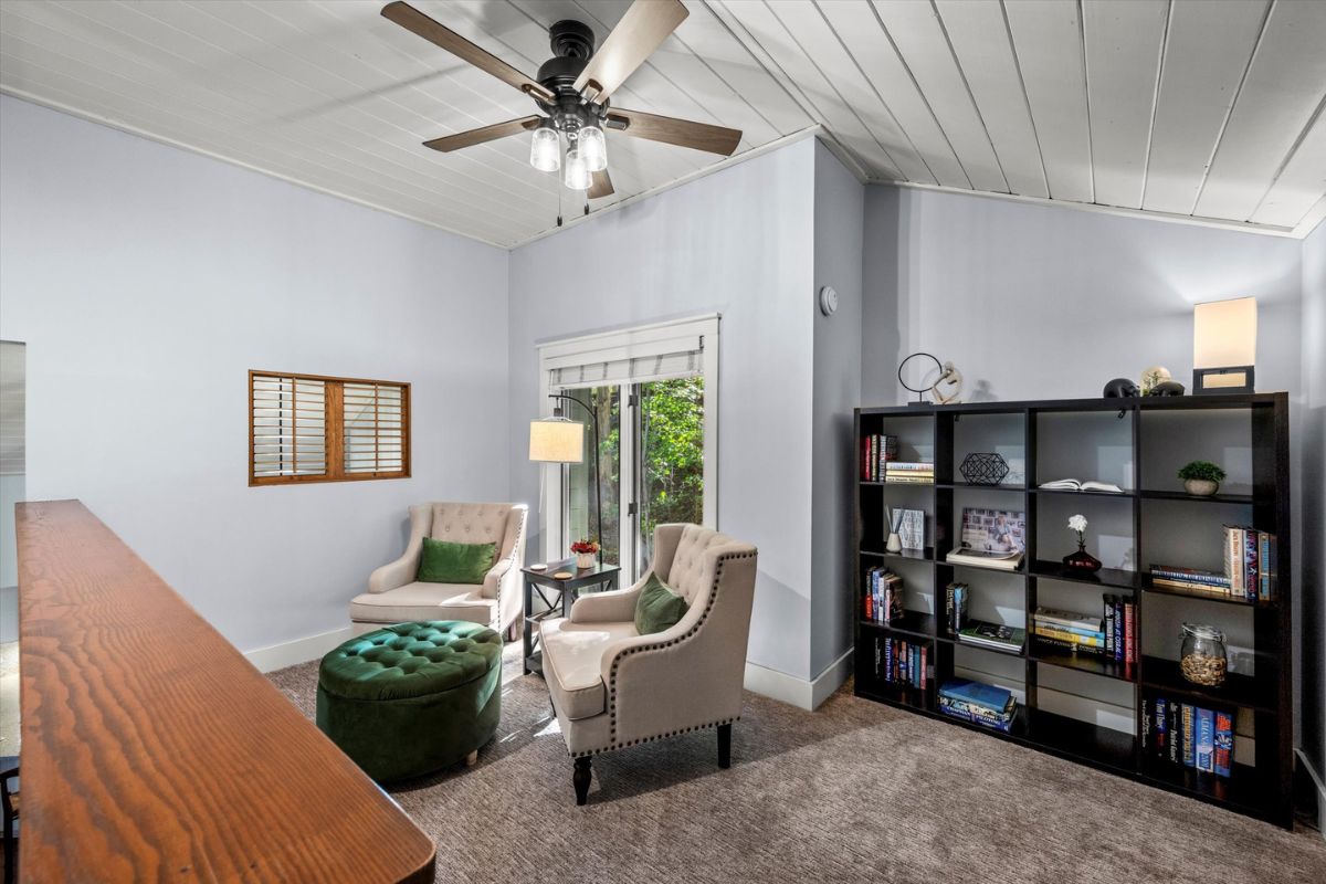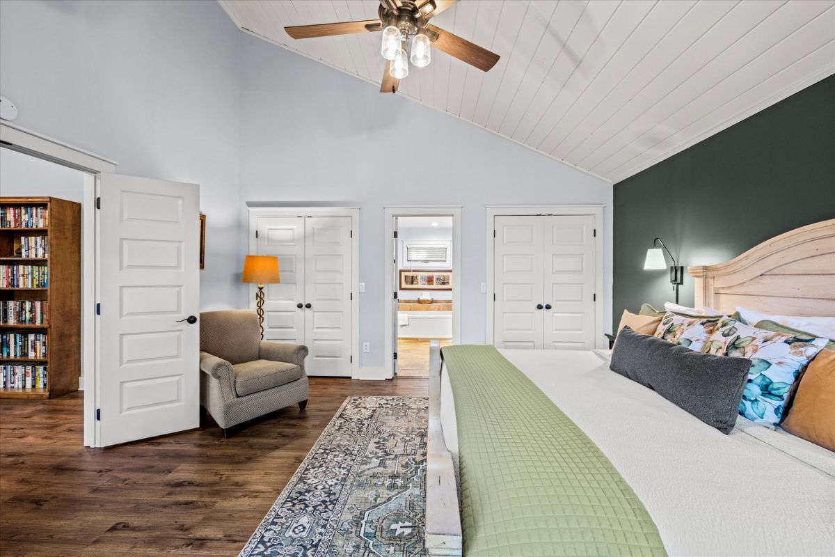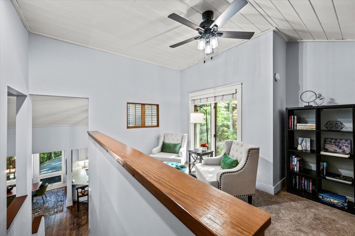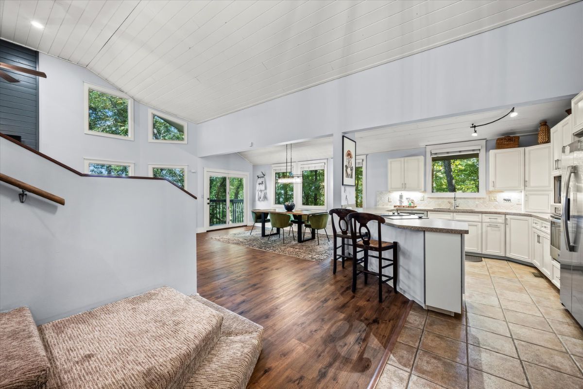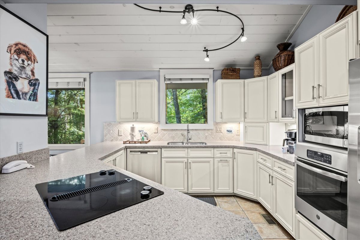 The open kitchen boasts modern amenities, including a Jenn-Aire range and a breakfast bar for casual dining and lively conversation. Fully equipped with everything you need, simply bring your groceries and let your inner chef shine. Gather around the dining table for shared meals and fun-filled game nights, with a great selection of board games ready for some friendly competition. The loft above the living room also offers an excellent place to relax and read your favorite novel.
