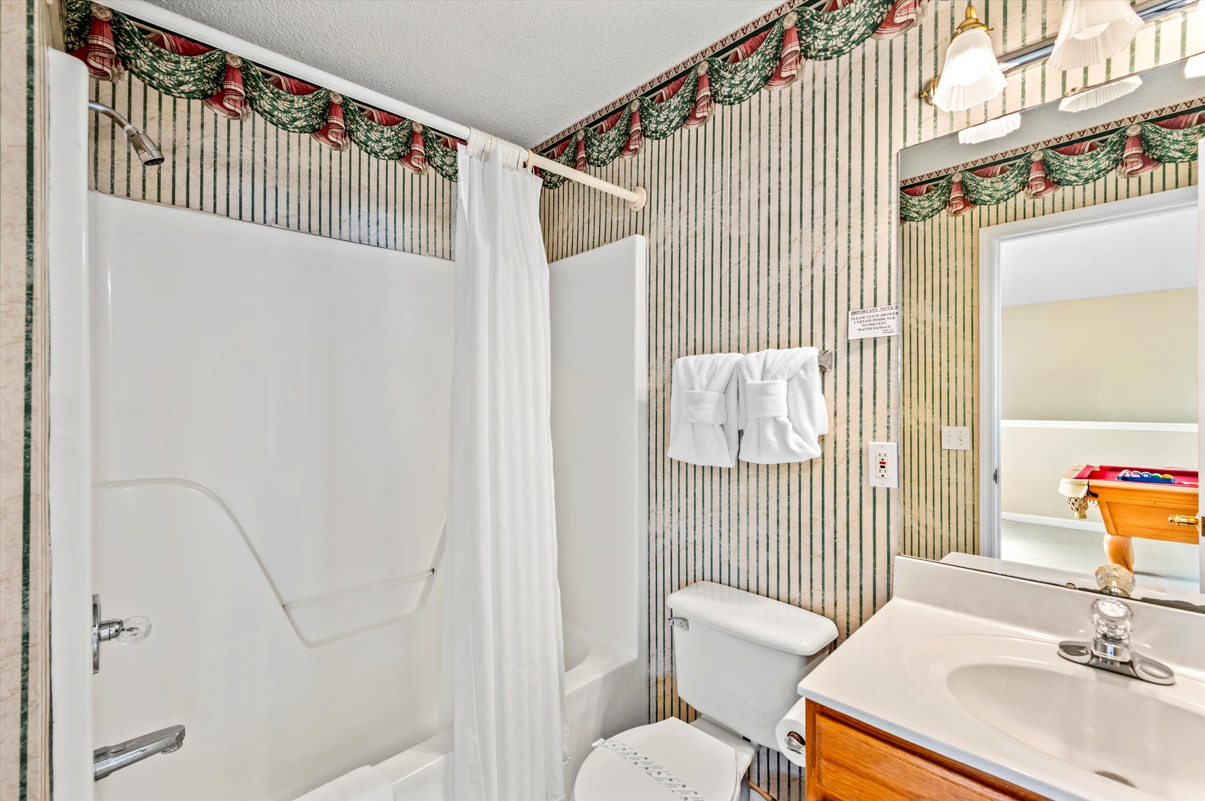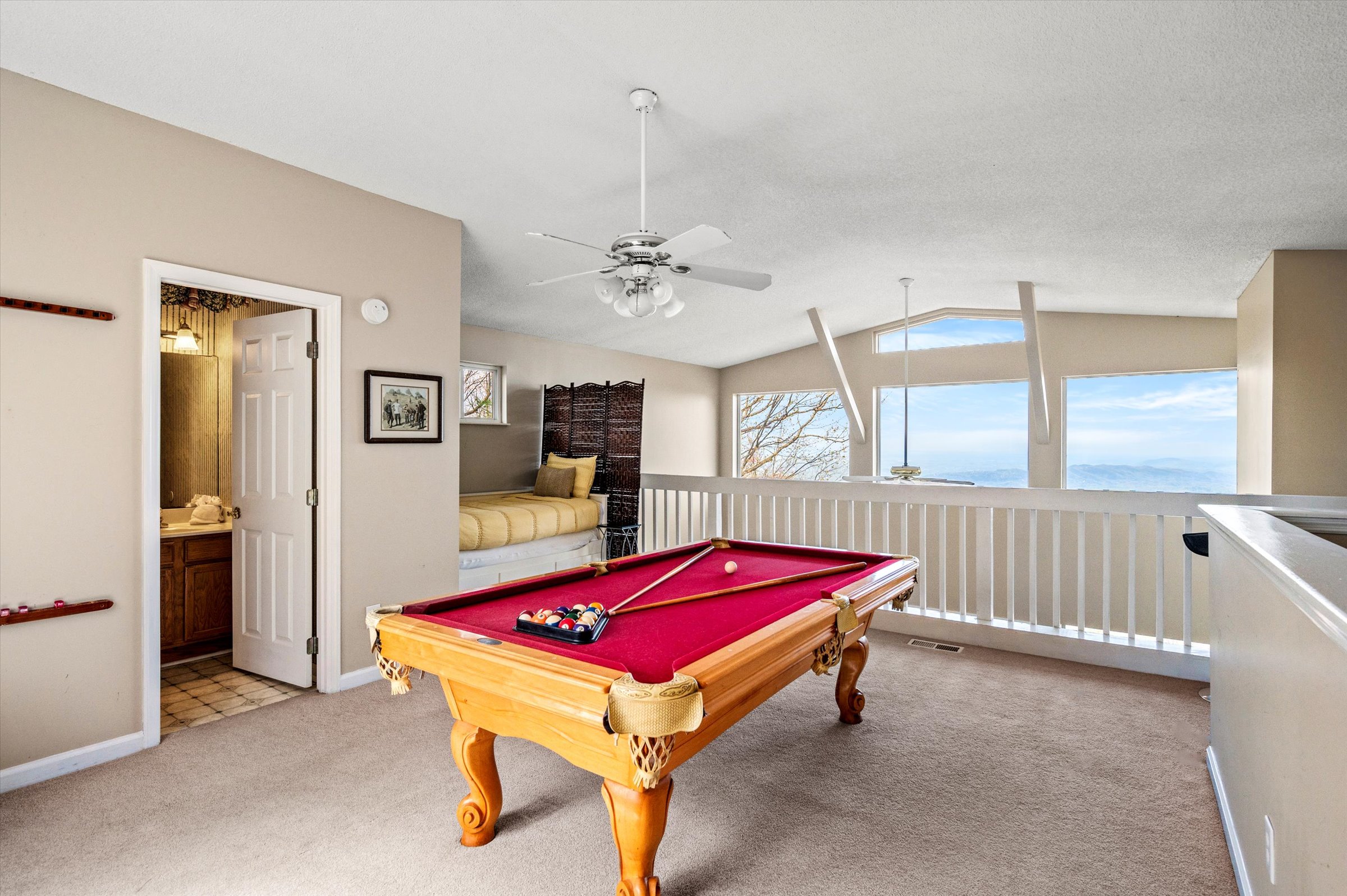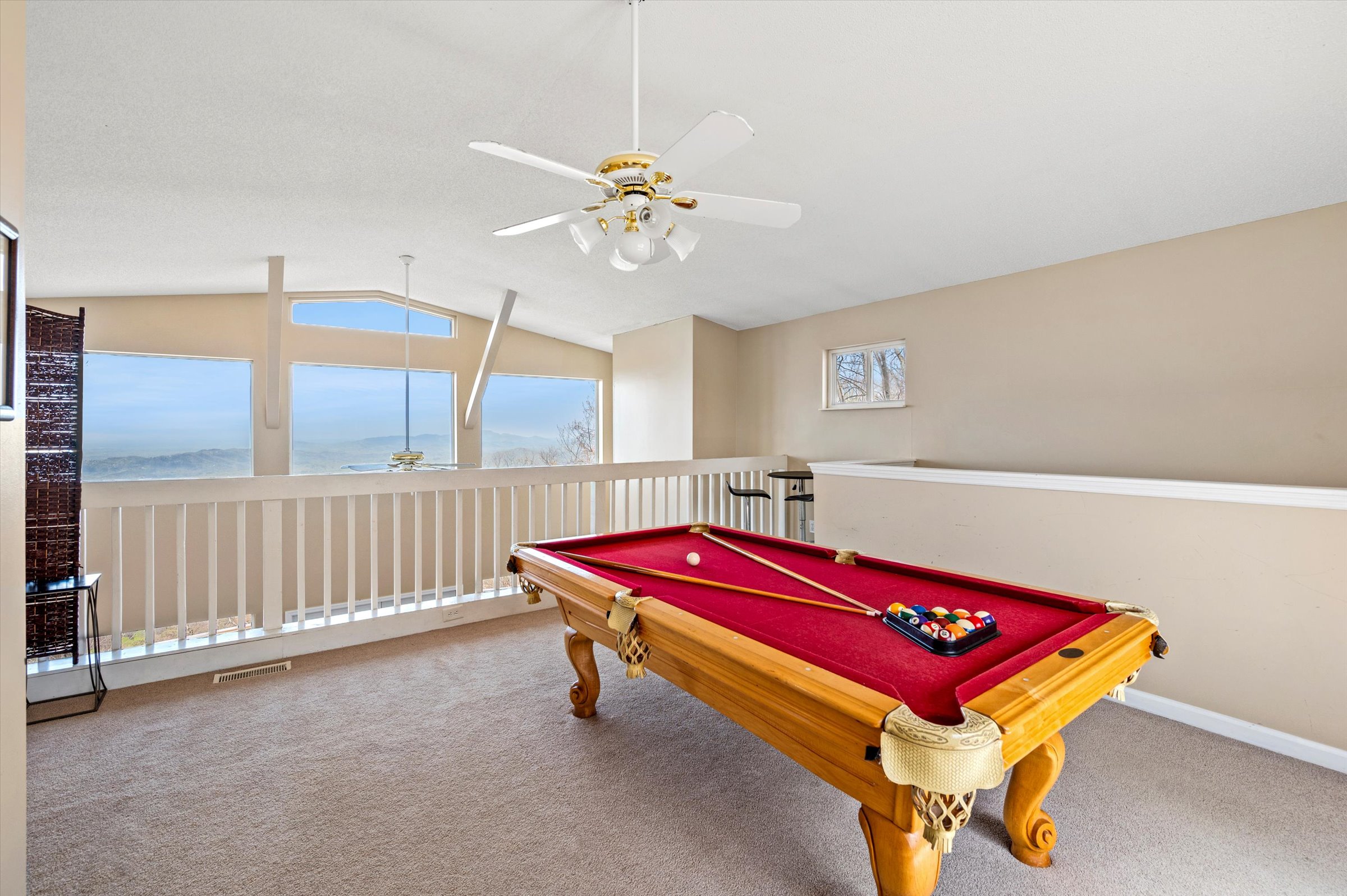 Venture upstairs to the loft, where a delightful surprise awaits: a pool table and sitting area for hours of fun and relaxation, along with an additional full bathroom for your convenience.
