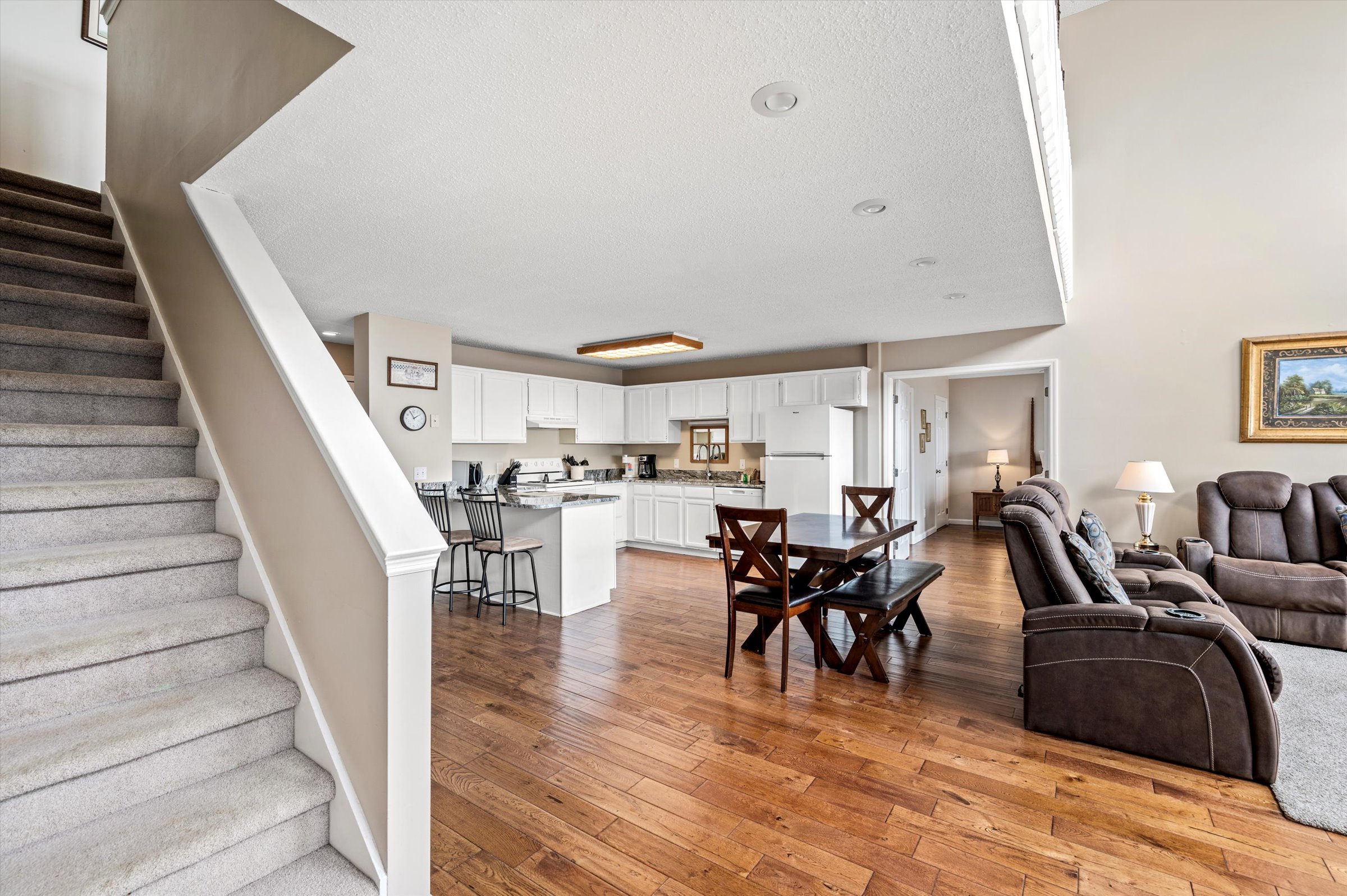 Step in and be wowed by the welcoming main level, where an open-concept common area awaits. Sink into the plush furnishings of the living room, where a large TV and wood-burning fireplace set the scene for cozy nights in. The adjacent dining area is perfect for shared meals and friendly game nights, while the fully-equipped kitchen has everything you need to whip up delicious meals – just bring along your groceries and you're all set.