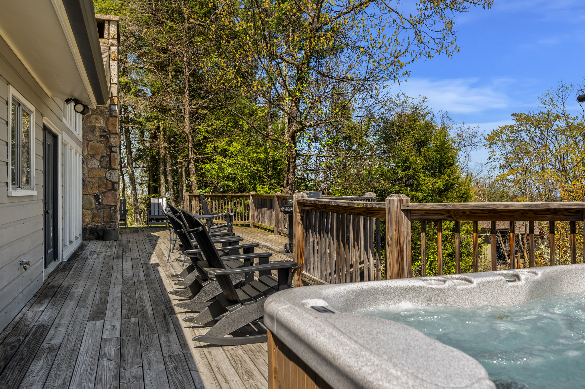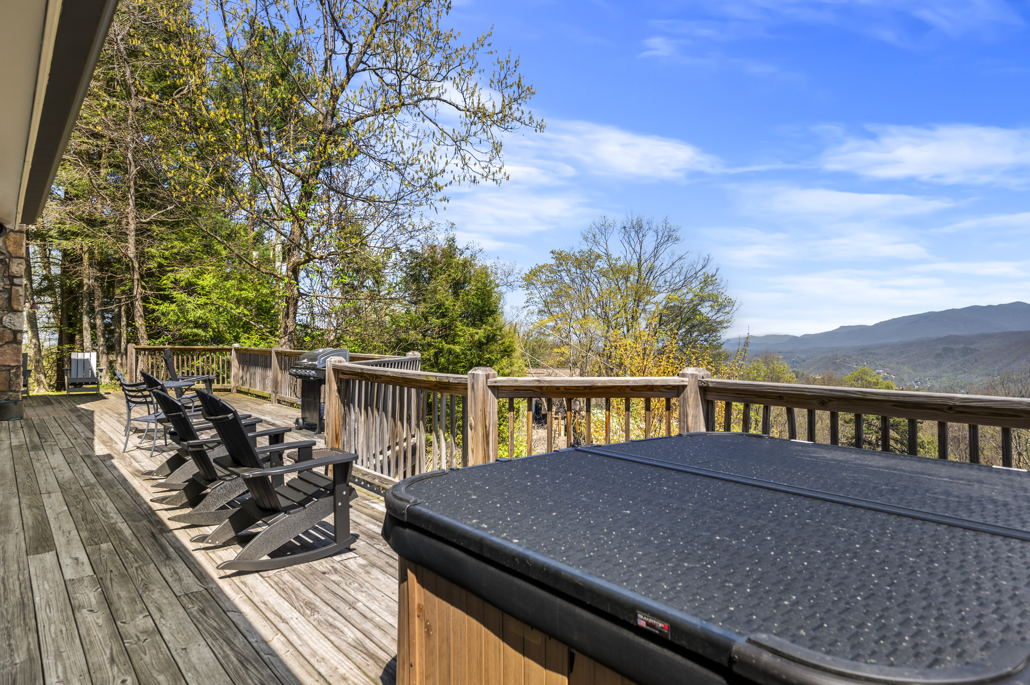 * Large deck with rockers, a hot tub, and incredible views of Mt. LeConte