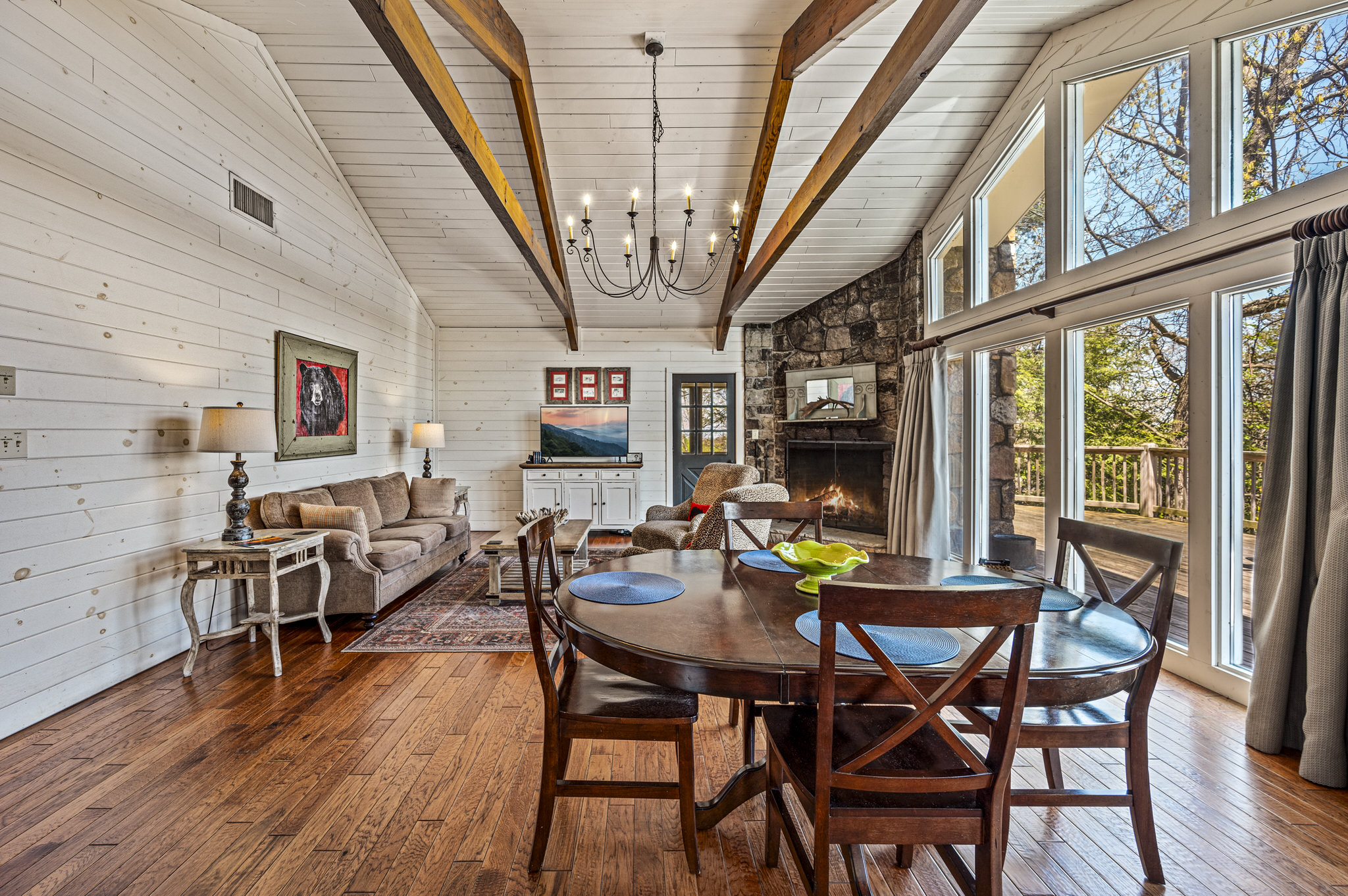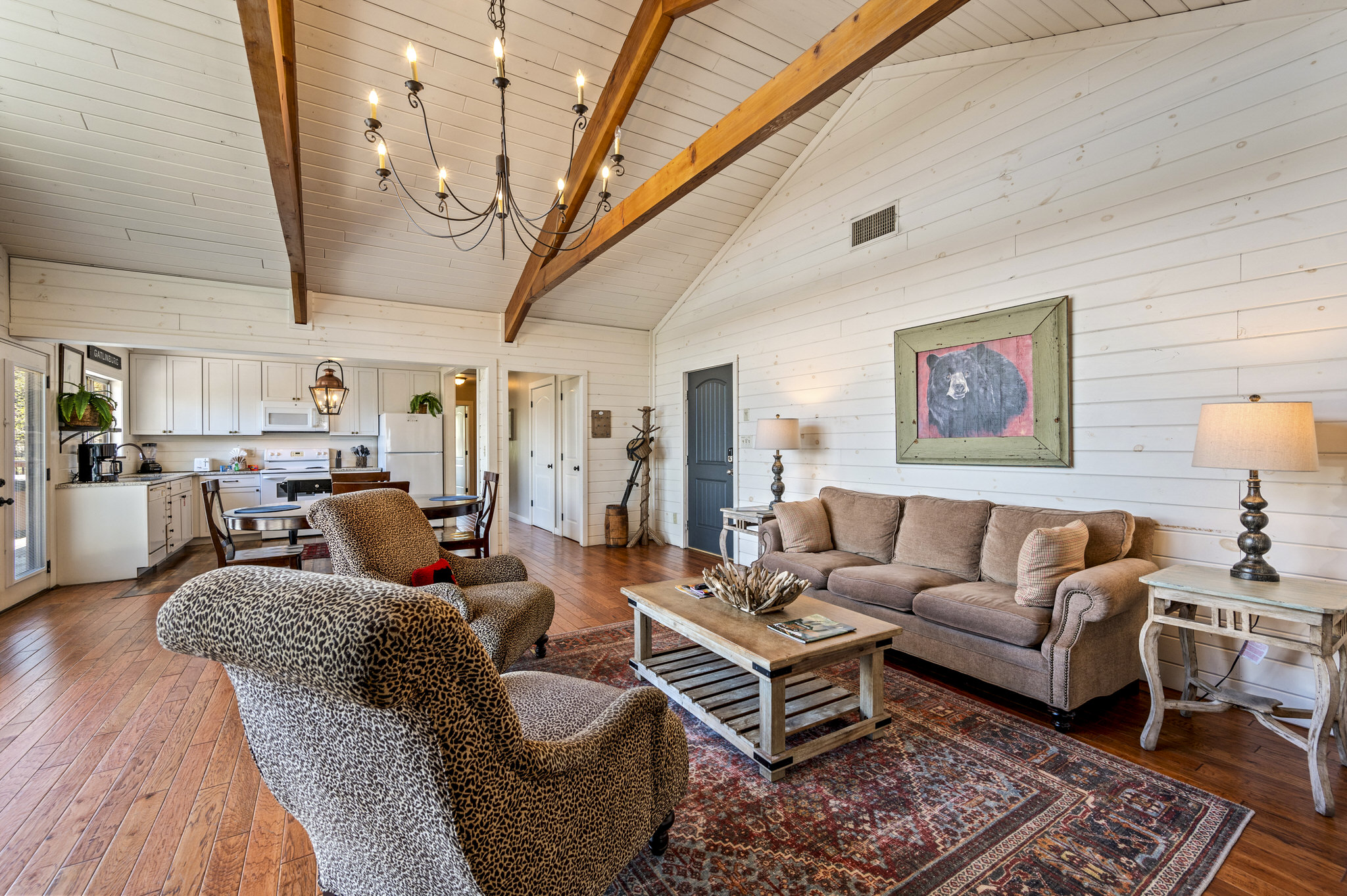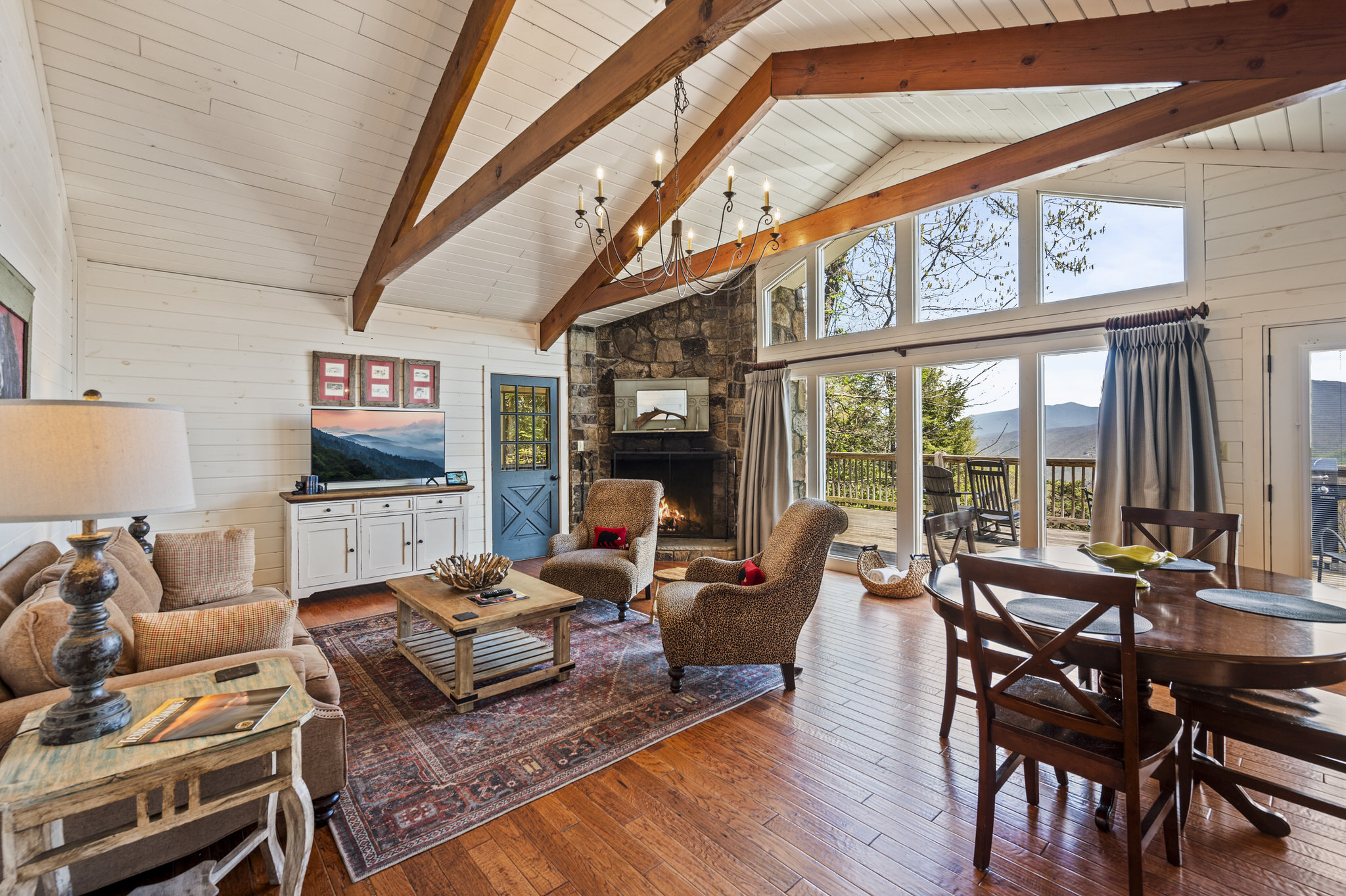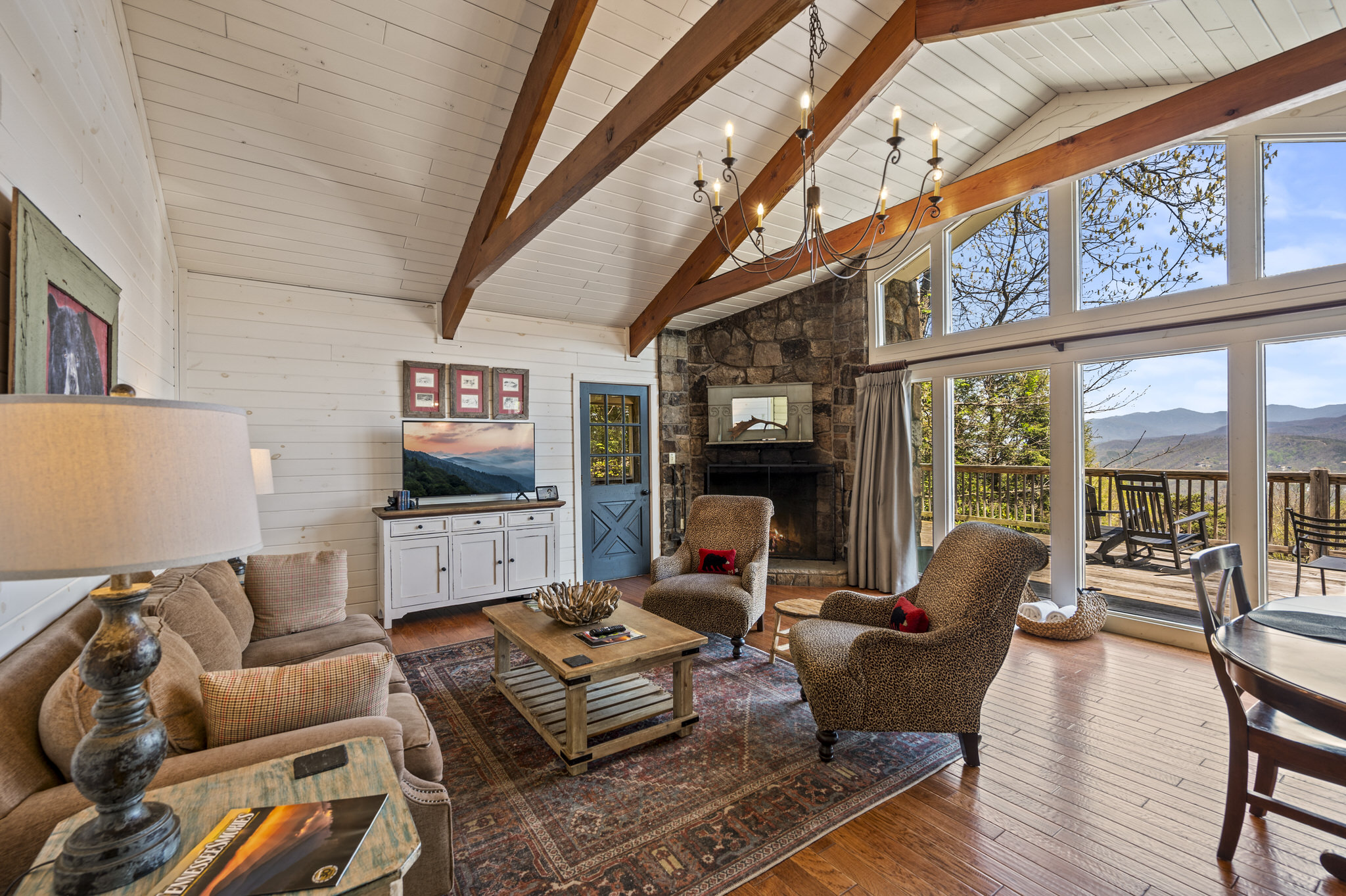 The great room integrates the fully-equipped kitchen seamlessly into the main living area, offering large windows for incredible mountain views at every turn. Plus, you'll find a cozy bonus reading room tucked away in the back, perfect for quiet moments of relaxation. Entertainment options abound with three televisions, including a smart TV in the living room, and access to your favorite movie apps using your login credentials.