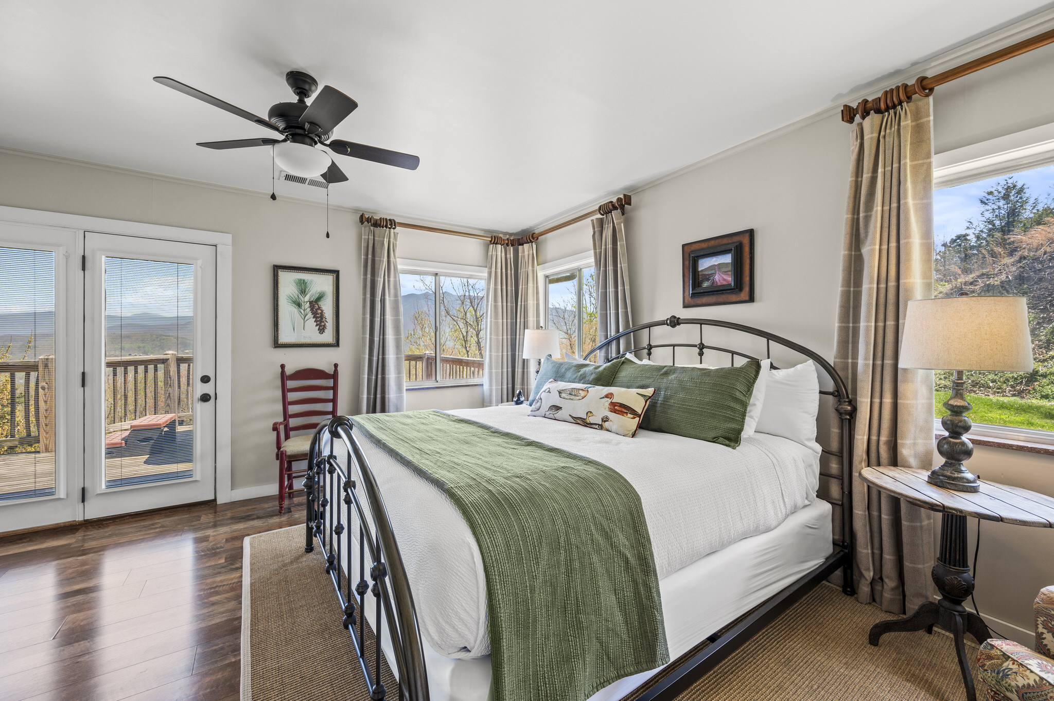 We enjoyed the peacefulness of the screen porch, while listening to the sounds of nature and later the rain. The beds are comfortable and everything was clean. The view from the deck was absolutely beautiful. Some brush and trees near the deck have grown up this past year, blocking some of the view that we once enjoyed. I’m hoping it is maintained and we don’t lose anymore of that panoramic view. However, the view is still great and we were still amazed at the vastness of our beautiful world. We had bear visitors! We enjoyed them from inside the cottage. The added hooks in the bathrooms and the new blinds on the doors were appreciated.Kay C from Indiana - Posted: 6/11/2024