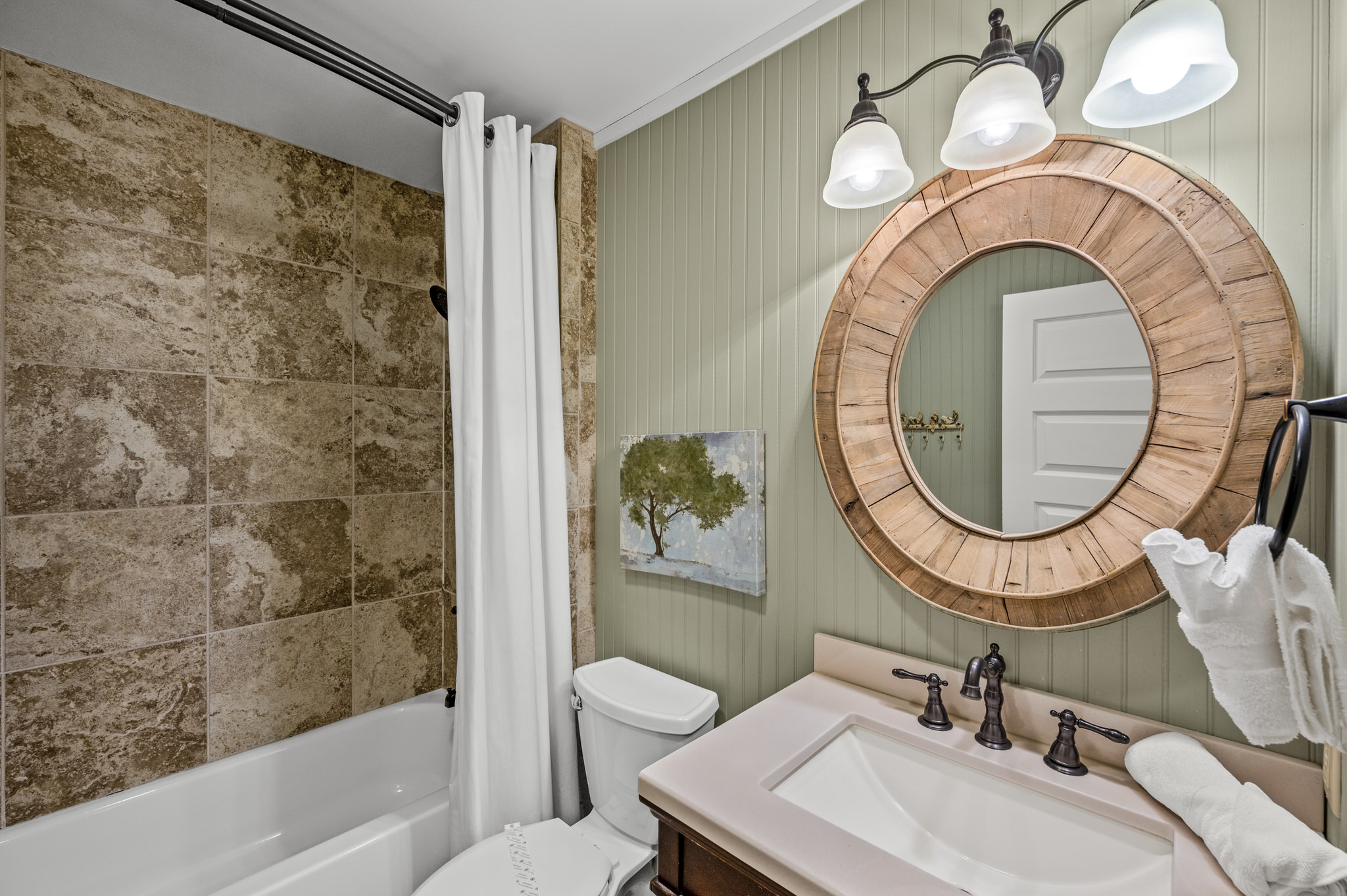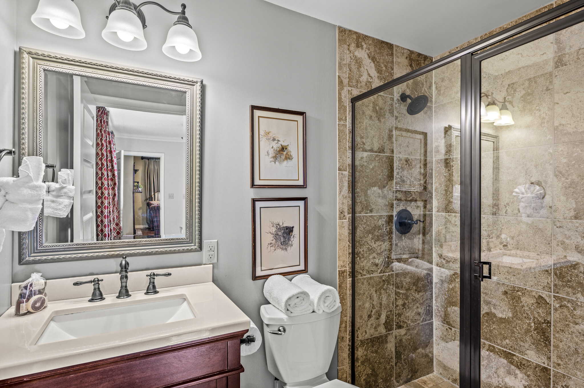 Well Steven, this might be the perfect review, as you are spot on with the goals of the owners and the designers who transformed this home into a warm and inviting vacation home---all the feels of home without the feeling of living in someone else's home. We appreciate your attention to detail in your review and hope to host you again soon!Mountain Laurel Chalets staff