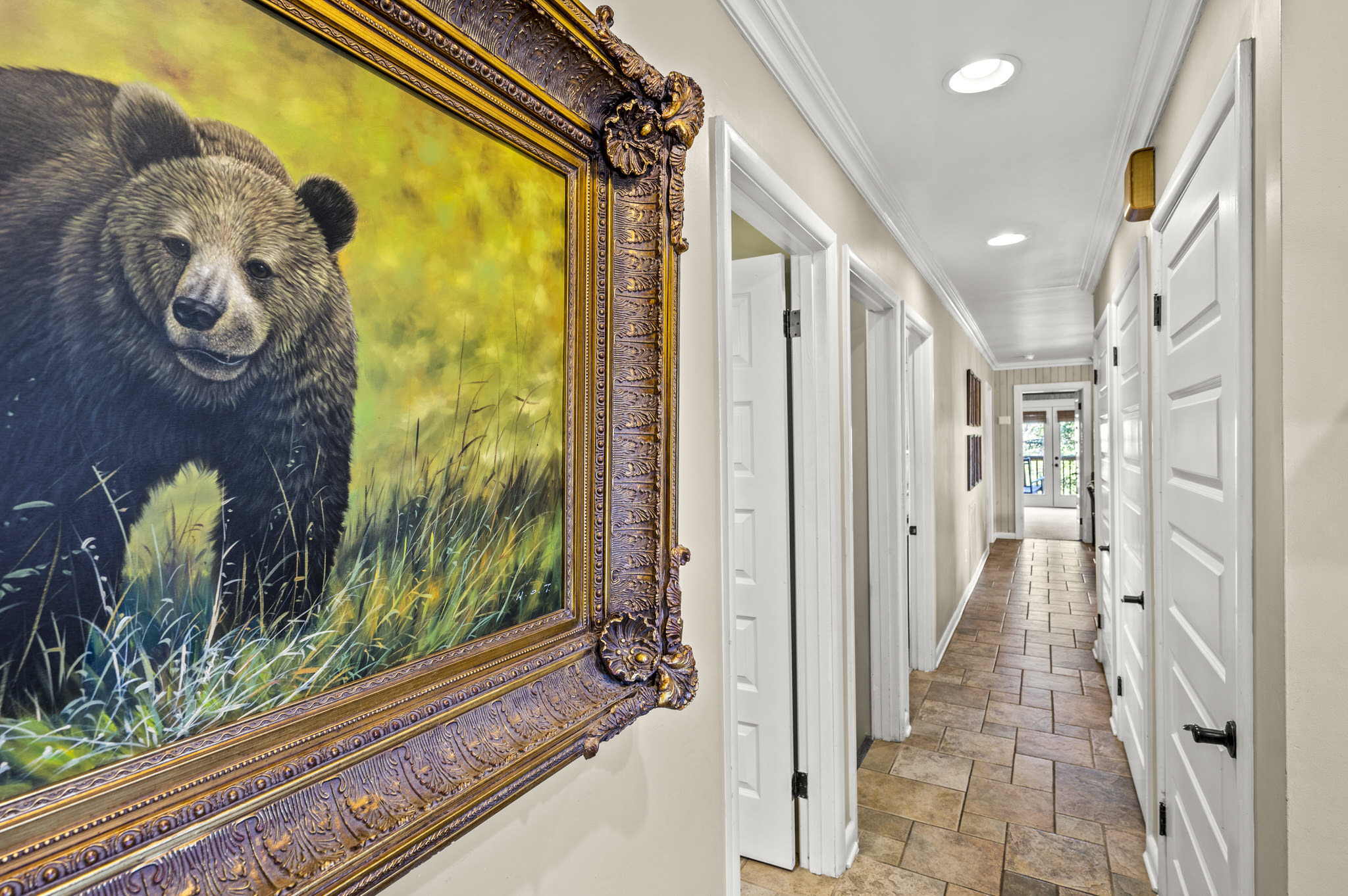 The main level is home to five king-sized bedrooms. The largest bedroom boasts a set of twin bunk beds, and an ensuite bathroom. Three more king suites offer private bathrooms, and the last king bedroom has access to a full hallway bathroom. Each bedroom has a large SmartTV, on which you can access Netflix and other popular streaming services (just bring your login credentials). Streaming shows is a breeze, thanks to SMM’s robust wifi network.