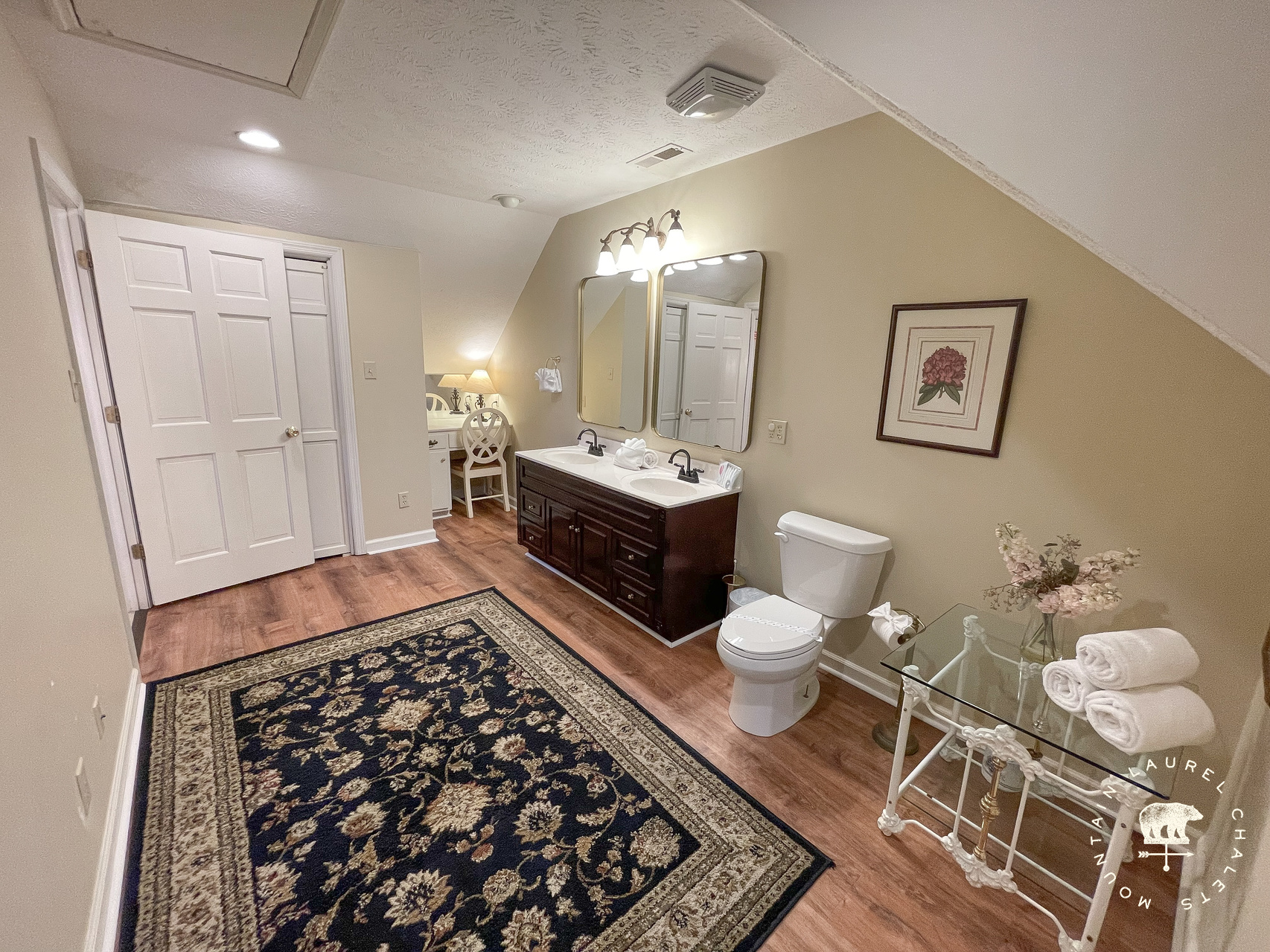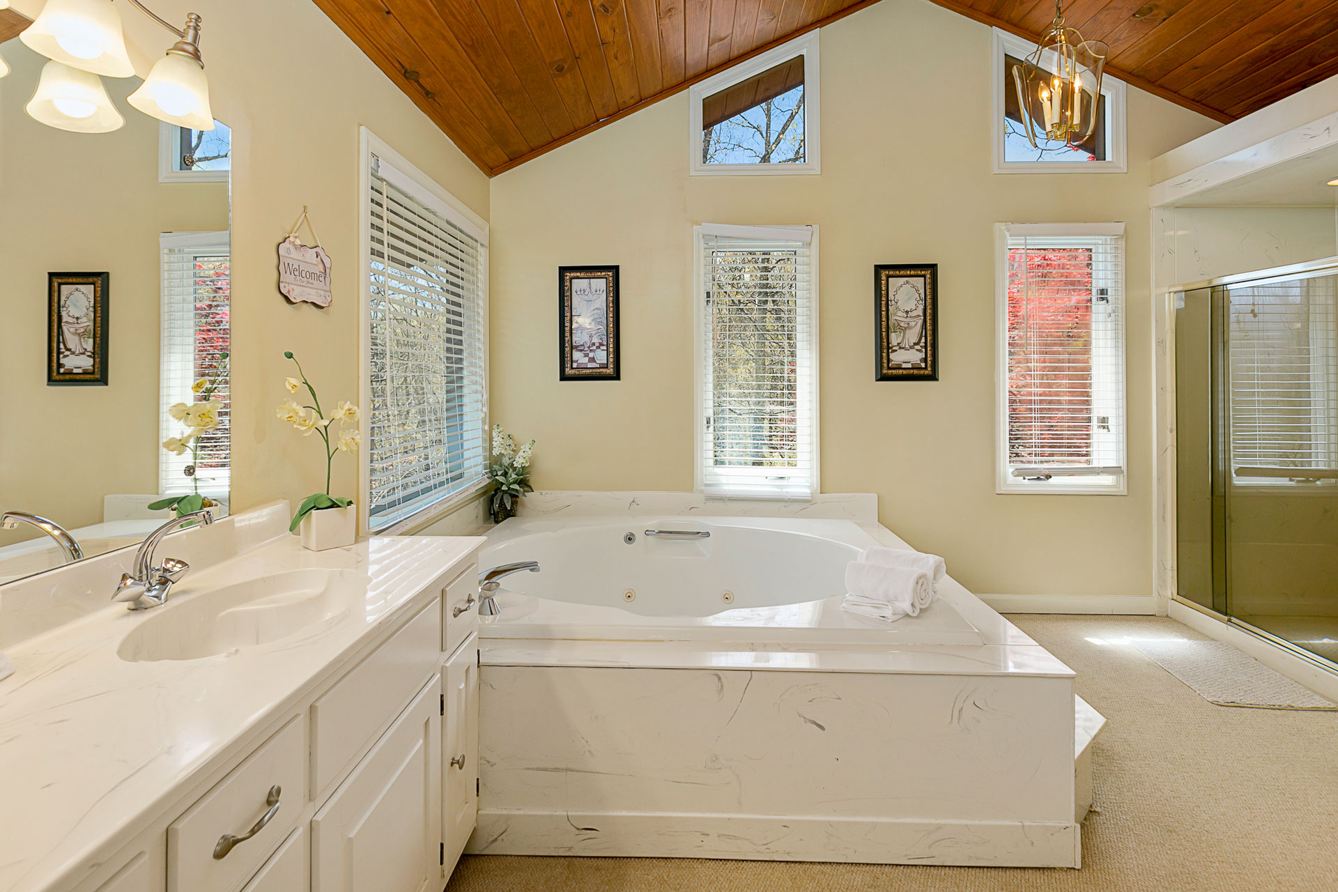 This chalet was just perfect for 3 couples. Very nice and well stocked. There are 2 different sets of stairs but that didn’t bother us. The 2 upstairs bathrooms are very large. It was the perfect chalet for our group & I would rent it again without hesitation. We always stay with mountain laurel chalets & wouldn’t consider renting from anybody else. They are fantastic! Pam does a great job!Kim H. - Posted: 4/26/2019