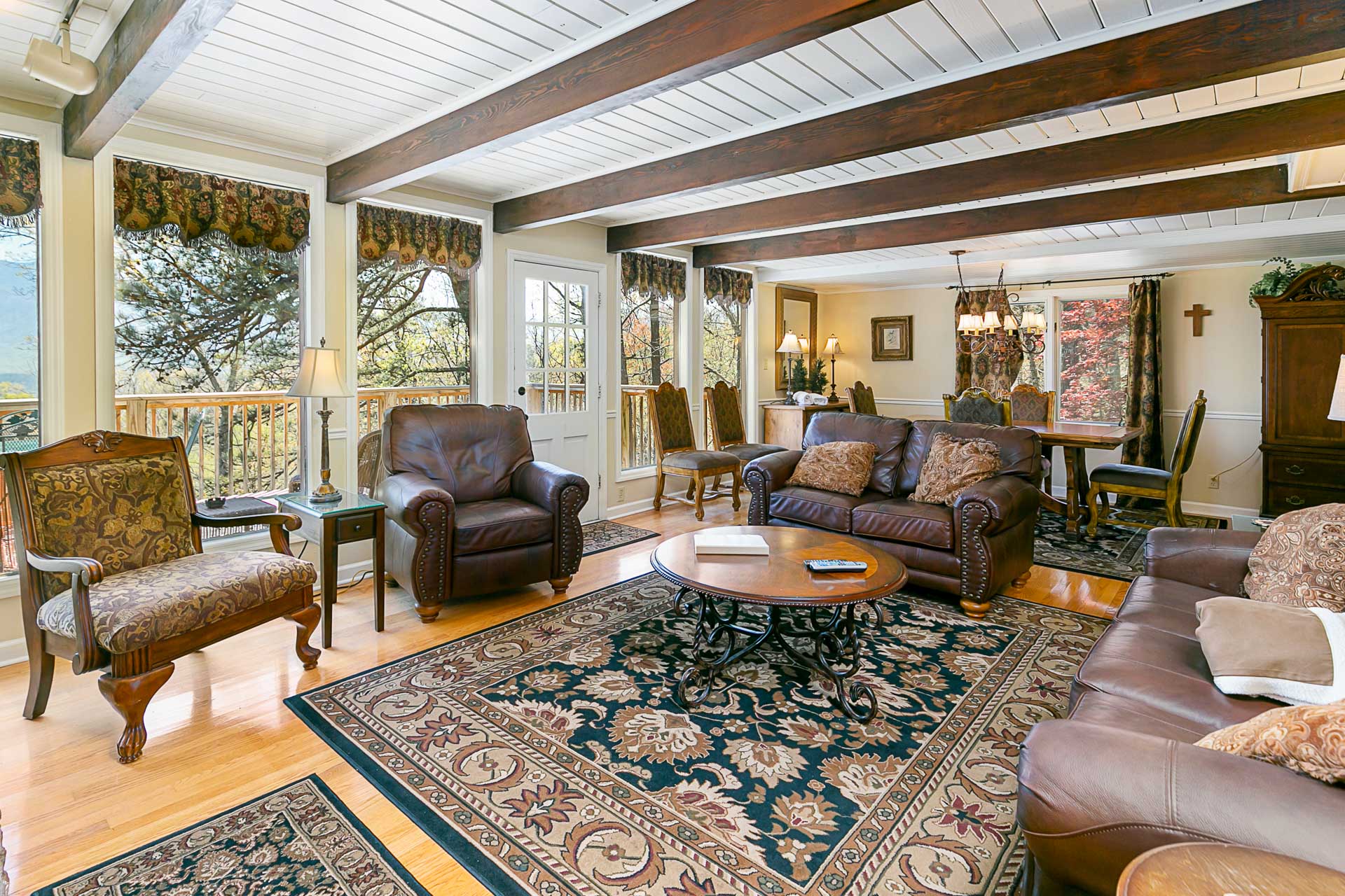 The three suite retreat is a beautiful property nestled beautifully in the Smokey Mountains. The convenience of having 4 bathrooms was perfect for our stay. The home is decorated beautifully and the outdoor deck was magnificent for our early morning coffee. The views from the deck were astonishing no matter what the time of day. Now for the down side.....the home is in need of some repairs. The carpeting in the bedrooms was noticeably dirty. All of the bathrooms, with the exception of the small bath in the lower level, had carpet! And this carpet was disgusting! The appliances are quite old which made it a challenge to prepare a meal. I am not familiar with mountains so I don't know if ants are a problem in higher elevations but the home definitely has an ant problem. It was nice having a yard large enough to play yard games and the outdoor furniture was certainly adequate. All in all we were happy with the home. The beds were very comfortable. This property is located high up in the mountains and the drive to it can be daunting at night. But once we reached our destination we were pleasantly surprised at how beautiful everything was.Joann G. - Posted: 5/30/2015
