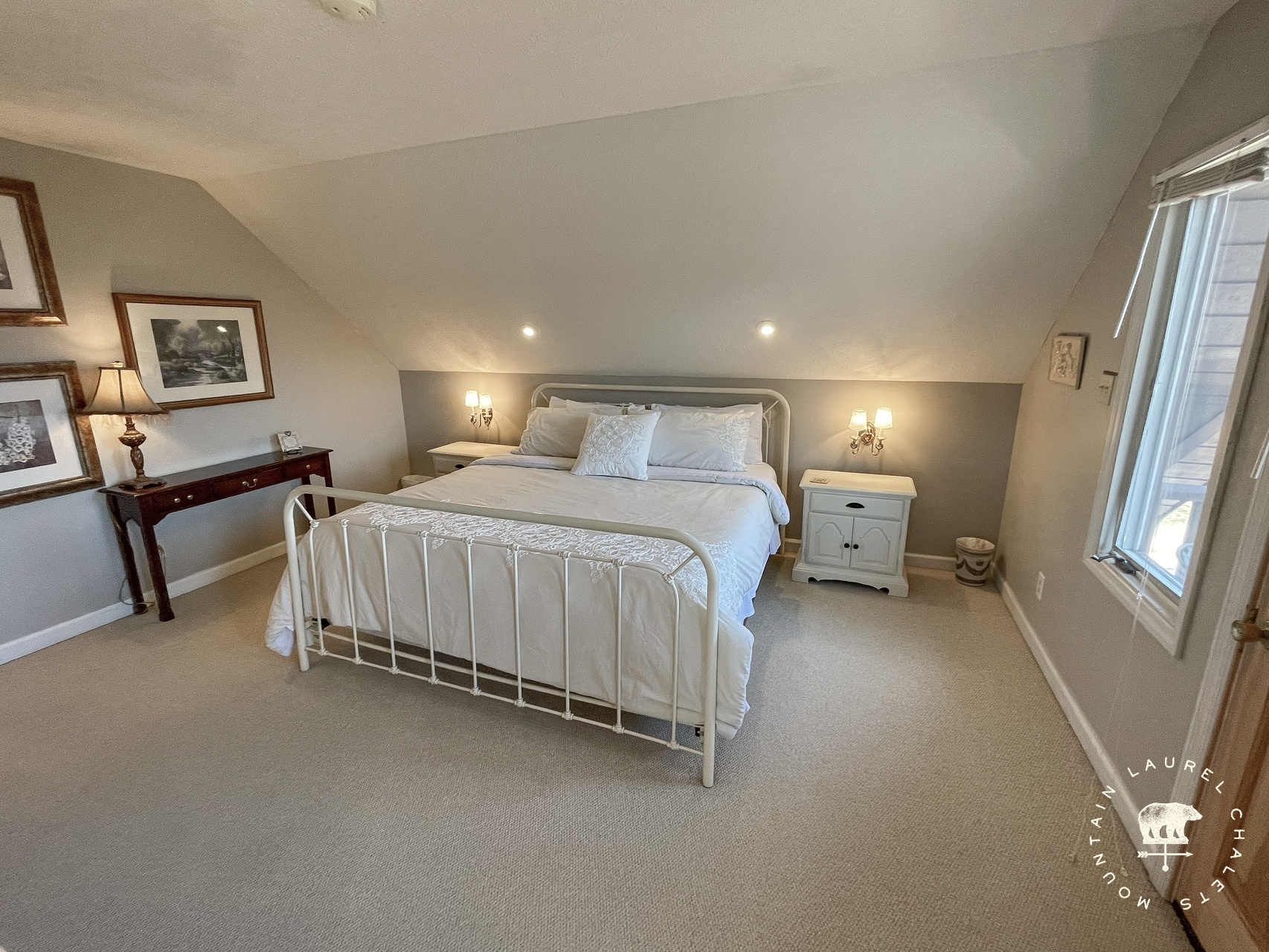| Bedroom 3 (upper level) | King | Private Bath | ||