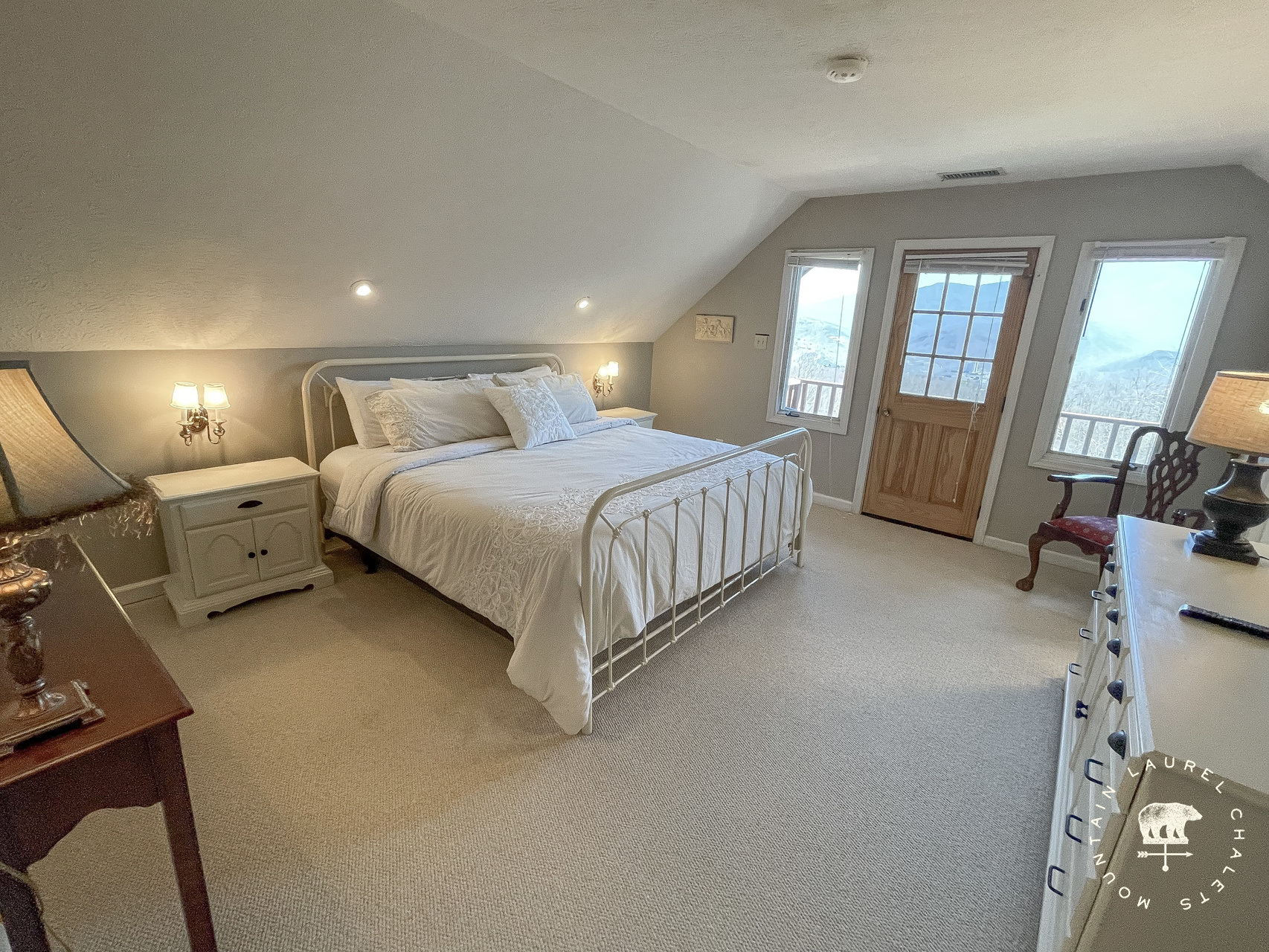 | Bedroom 2 (upper level) | King | Private Bath | ||