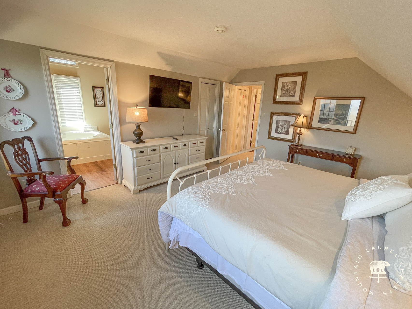 We love the spaciousness of this chalet! It allows for everyone to have their own space, while also having fantastic common areas for optimal quality time with loved ones. The view is amazing and can be enjoyed from the porch, hot tub, or even inside the house! We are so glad that you enjoyed your stay with us, and we hope to see you again soon!Mountain Laurel Chalets staff