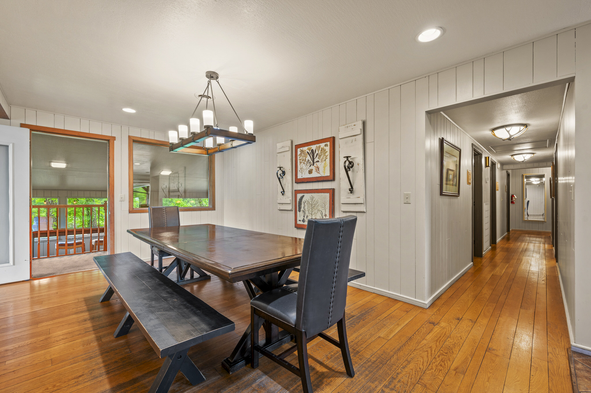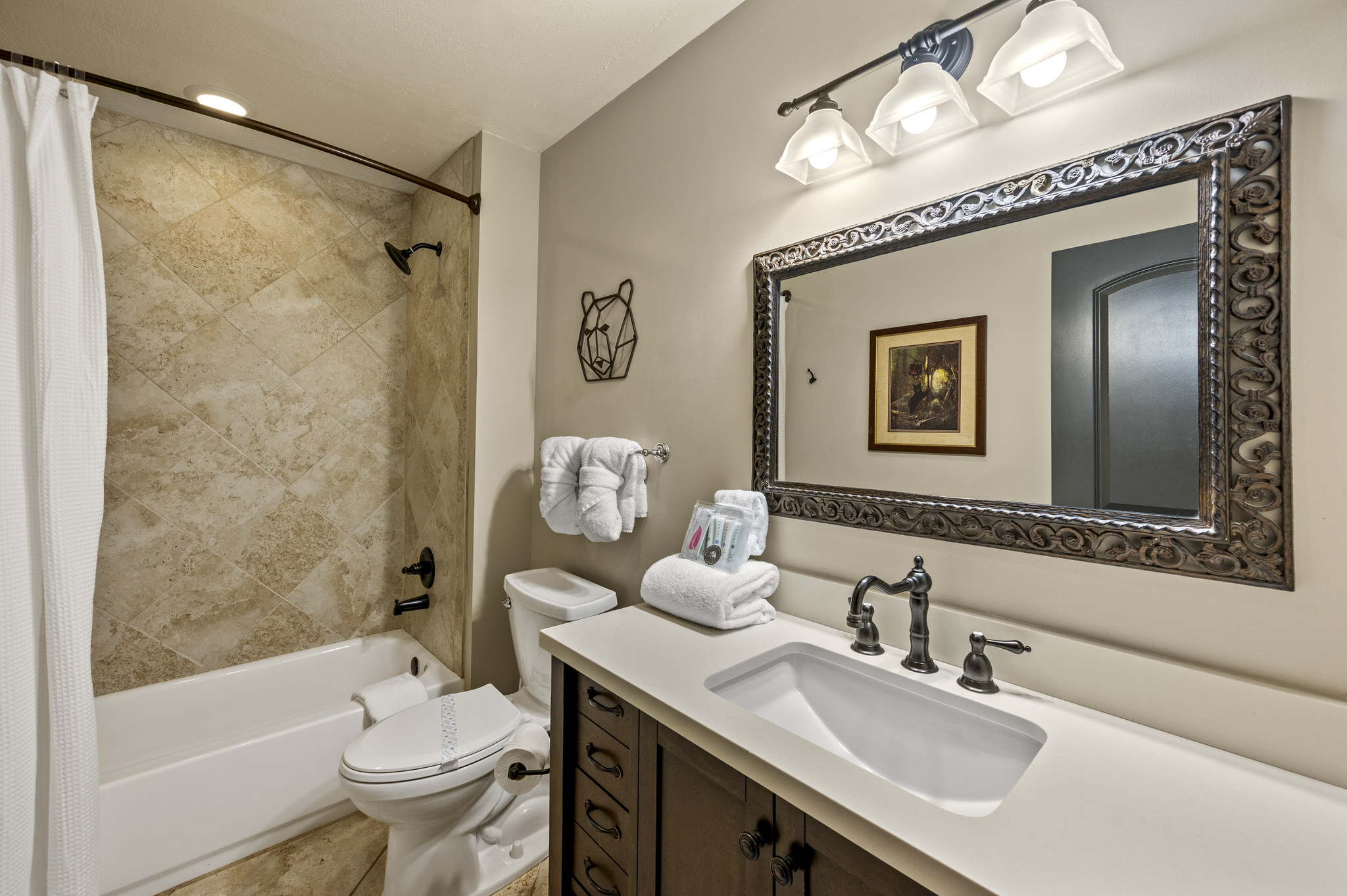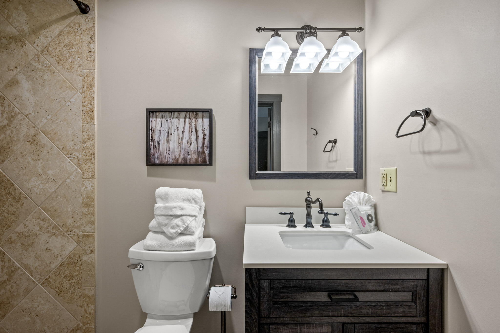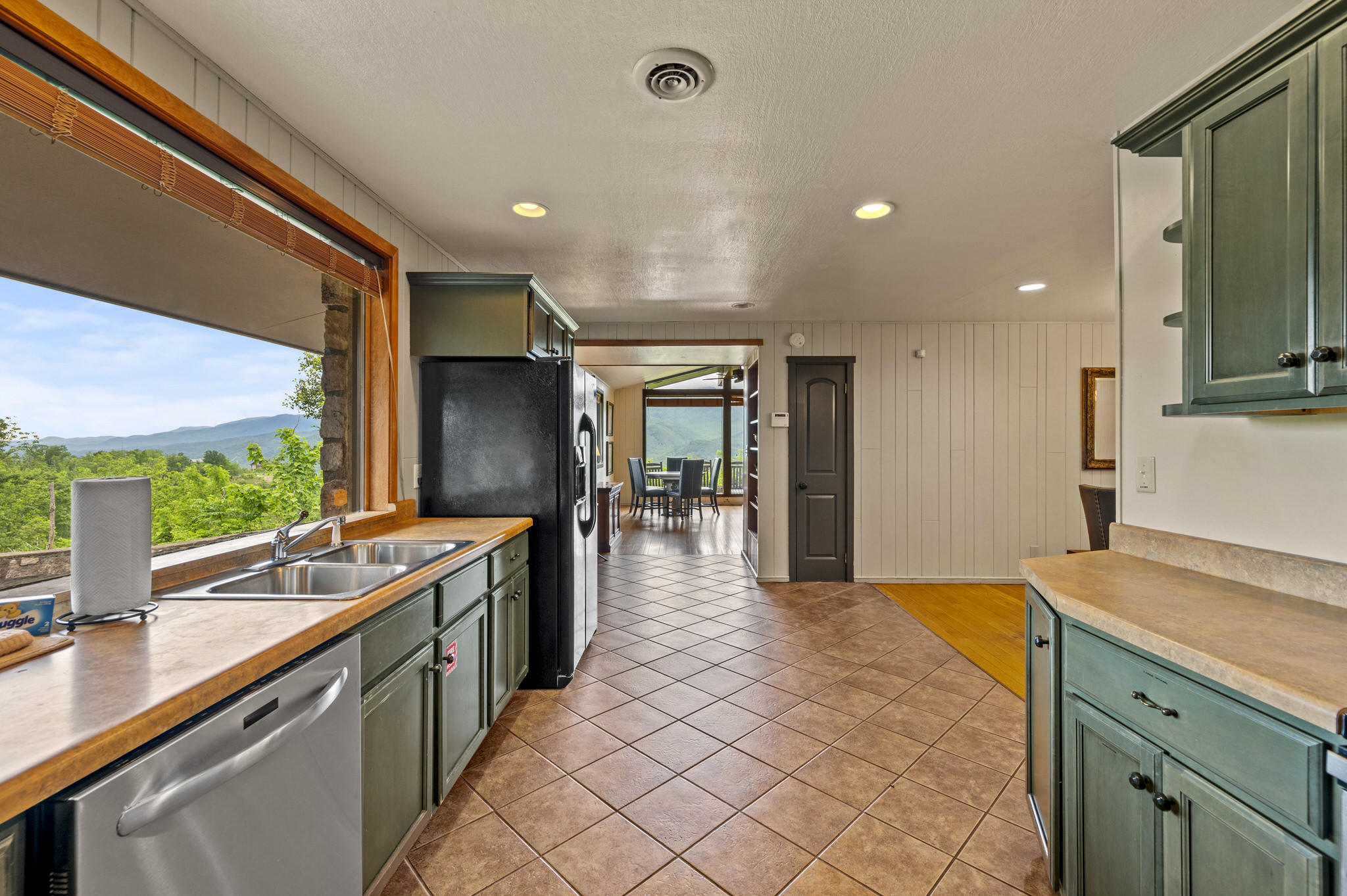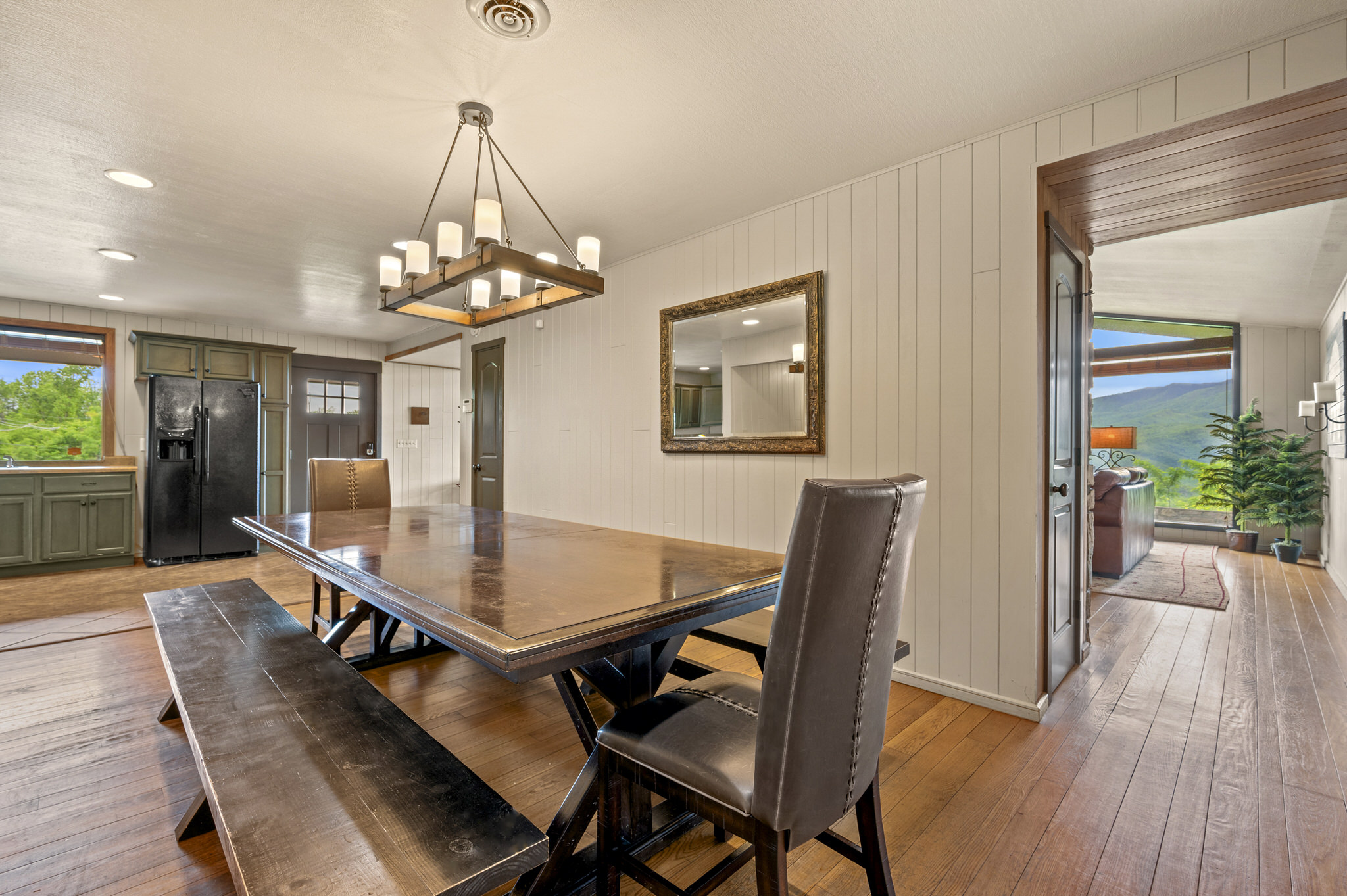 Step inside and discover a spacious kitchen, fully equipped to cater to the culinary aspirations of your group – just remember to bring along your favorite groceries. Adjacent to the kitchen, a generous dining area beckons for shared meals and lively game nights, while the expansive living room offers a den of comfort and relaxation. Sink into the plush furnishings, admire the mesmerizing views, and gather around the crackling fireplace for cozy movie nights.