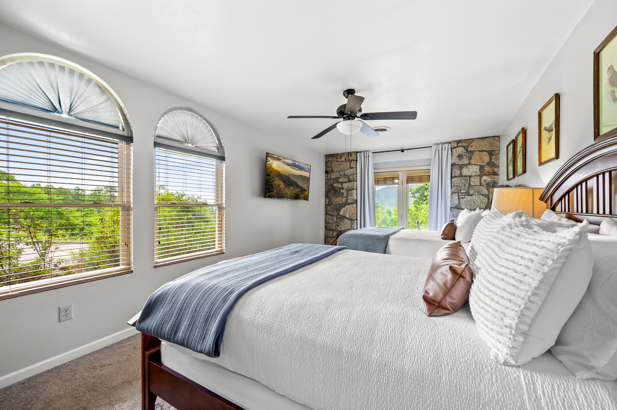 Situated on a remarkable piece of land, Trillium Lodge boasts some of the most breathtaking views of Mt. LeConte found anywhere in the Smokies, greeting guests with awe-inspiring beauty from the moment they arrive. A beautiful flower bed with a large natural stone fountain creates a peaceful ambience as you approach the front door.